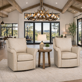 American-Made Ivory Leather Swivel Chair – Frazier Western Accent Seating