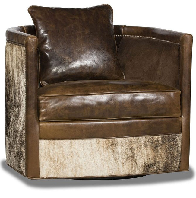 We offer a luxurious selection of Leather Swivel Chairs in an array of fine leathers and fabrics. Made to the highest standards of quality and craftsmanship. If you have a space in your home that you would like to add more seating, but you don't have a lot of space, consider purchasing one of our beautiful leather swivel chairs that we have curated for you. Our leather swivel chairs are both comfortable and versatile and will fit well into that small space in your house. Our Leather Swivel Chairs will add a rustic elegant appeal to your ranch home or a timeless classic style to any space for decades to come while staying comfortable for everyday use. Our leather swivel chairs are handcrafted by artisan craftsmen, with the highest quality upholstery. The phrase “they just don’t make ‘em like this anymore” doesn’t apply to our leather swivel chairs and gliders, or any of the other furniture that you can find at Your Western Decor. Our furniture is made the way they used to do it, so you know that it will last a long time and be sturdy enough for you to use on a regular basis. We have great options with leather and fringe, that will add rustic chic and western charm to any room of your ranch home, mountain lodge or cabin, or business establishment.