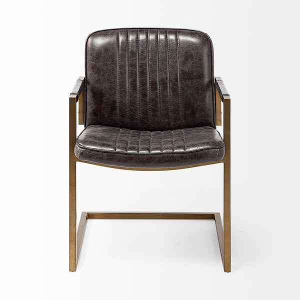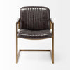 Make a statement with this beautiful Black Leather Accent Chair With Brass Frame. Its rustic leather and chic frame make it the perfect addition to any living room. Enjoy timeless style and sumptuous comfort that won't go out of fashion. Where timeless style meets modern luxury - a must-have item for any home!