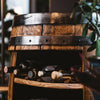 Transform your cluttered space into an organized and stylish showcase with our open-concept barrel wine rack. Made from authentic whiskey-aging barrels from Michigan distilleries, each handcrafted wine cabinet adds a touch of rustic charm while providing a functional and decorative storage solution. Say goodbye to overflowing countertops and let your fine (or not-so-fine) bottles shine in their new home!