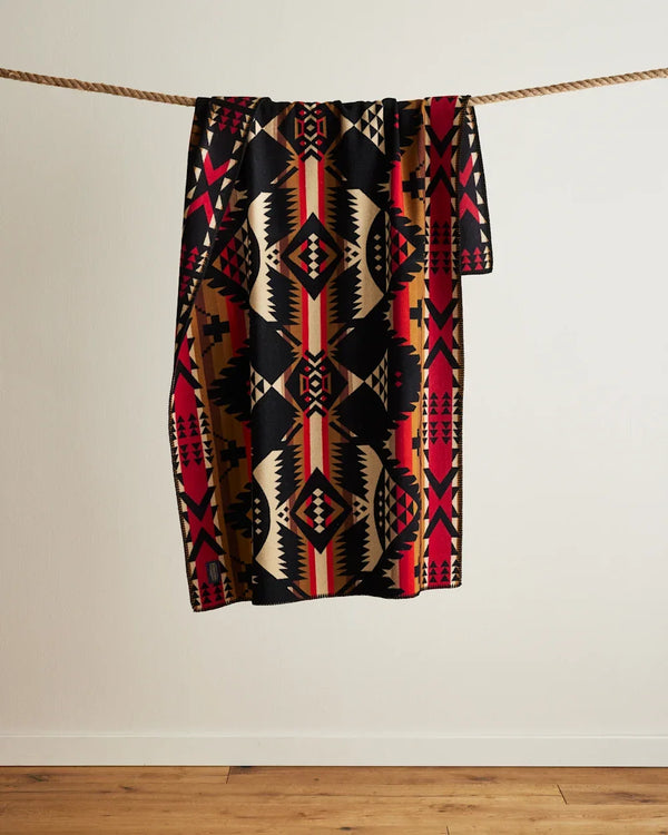 Inspired by the beauty and charm of Nehalem, this wool saddle blanket is proudly made in the USA. Featuring a design that pays homage to the town, river, bay, and park of Oregon's Pacific Coast, this blanket captures the essence of its surroundings. The large ovals represent the ebbing and rising tides of Nehalem Bay, a popular spot for crabbing, fishing, and clamming. Triangular tree shapes symbolize the forested bike and equestrian trails found throughout the Nehalem State Park. Additionally, the repeated "X" in the horizontal bands is a nod to the legends of Spanish treasure buried on nearby Neahkahnie Mountain. Don't miss out on this must-have item for any outdoor enthusiast!