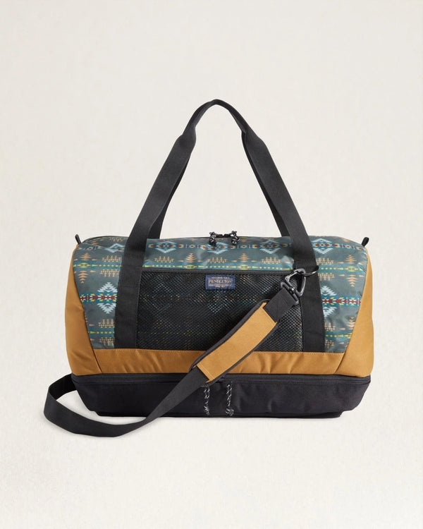 Constructed with durable, wipe-clean polyester, this generously sized travel bag features exterior mesh pockets, one interior zip pocket, and a separate shoe compartment at the base. Travel in style with the Rancho Arroyo Weekender.