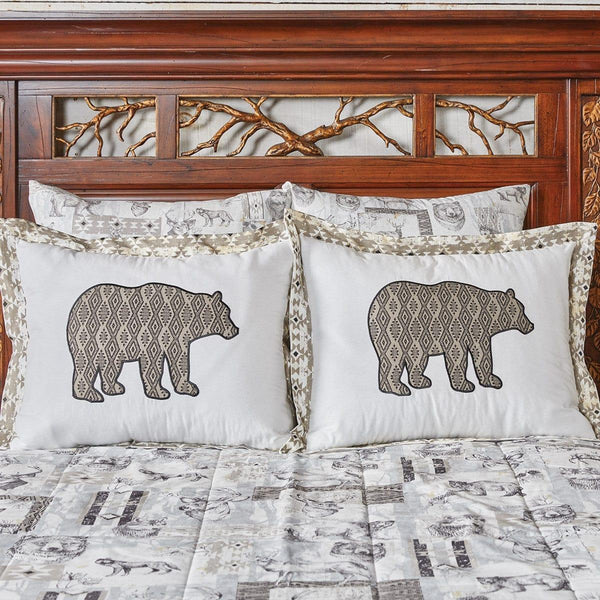 Experience a luxurious mountain retreat in your very own bedroom with our Summit Wildlife Bedding Collection. Transform your space with rustic elegance as you surround yourself with deer, elk, wolves, and bears on a backdrop of soft, off-white cotton. Adorned with grey Aztec motifs and scenes of lodge scenery, such as pine cones, leaves, and branches, this bedding will transport you to a stunning wilderness oasis.