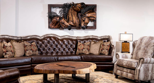 Behold the stunning beauty of our Trio of Horses Wall Sculpture! This precious piece features iron manes, lovingly crafted by the artist with their beloved horses in mind. Enclosed in a handsome recycled metal box frame, this one-of-a-kind treasure is made with recycled metal for the frame and hand-molded resin for the heads - an exceptional masterpiece!