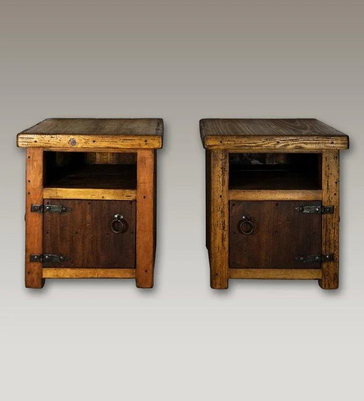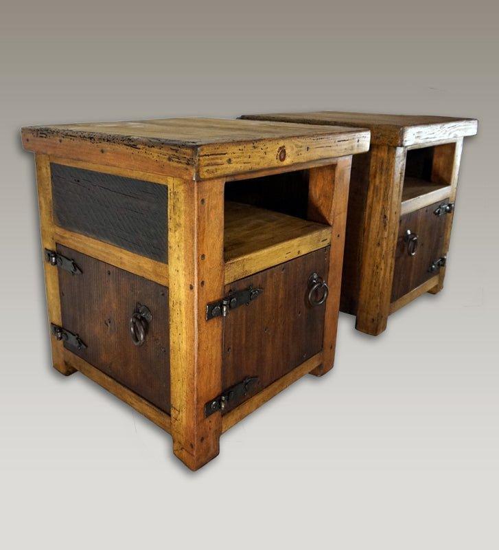 This alluring side table is crafted with both reusable and fresh pine wood. With a solid top and two double doors on either side, accessibility and ample storage are essential features! Hand-forged iron hinges, metal rings, and old-world style hardware create a fascinating look. Plus, you can choose a left- or right-side placement. Enjoy the imperfections and unique colors that reclaimed wood can bring!