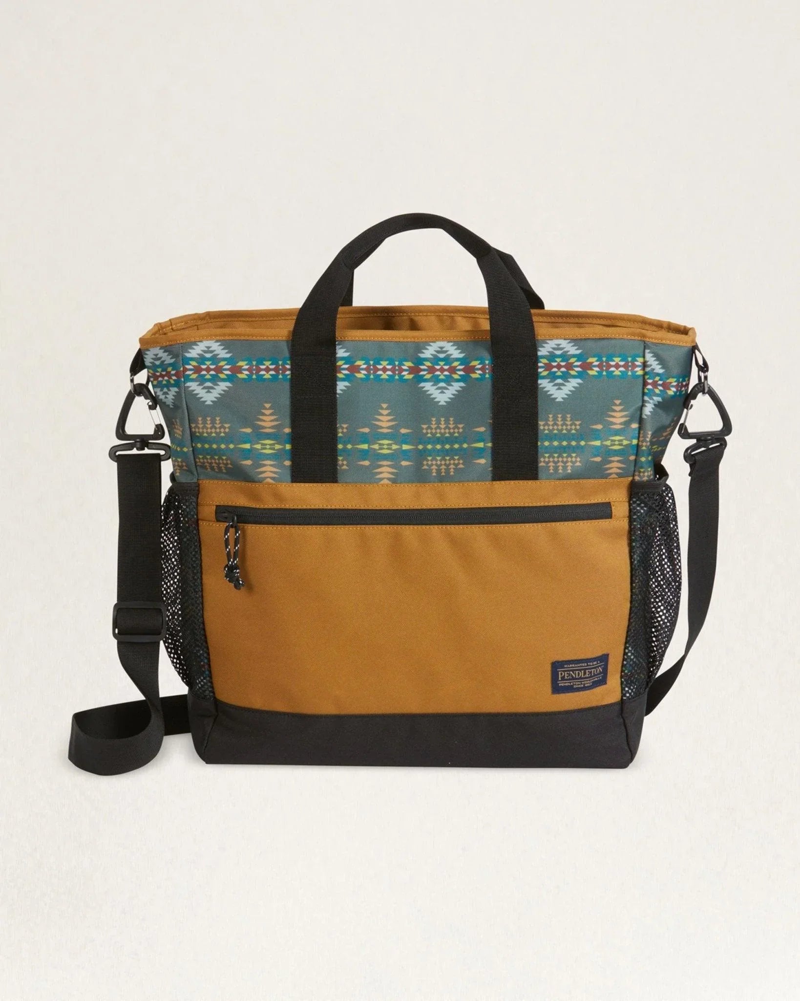 This tote features a zip-top closure and a well-designed interior with various pockets. Made of durable polyester, it also comes with webbed handles and an adjustable/detachable 38" crossbody strap for convenience. Please note that pattern placement may vary.