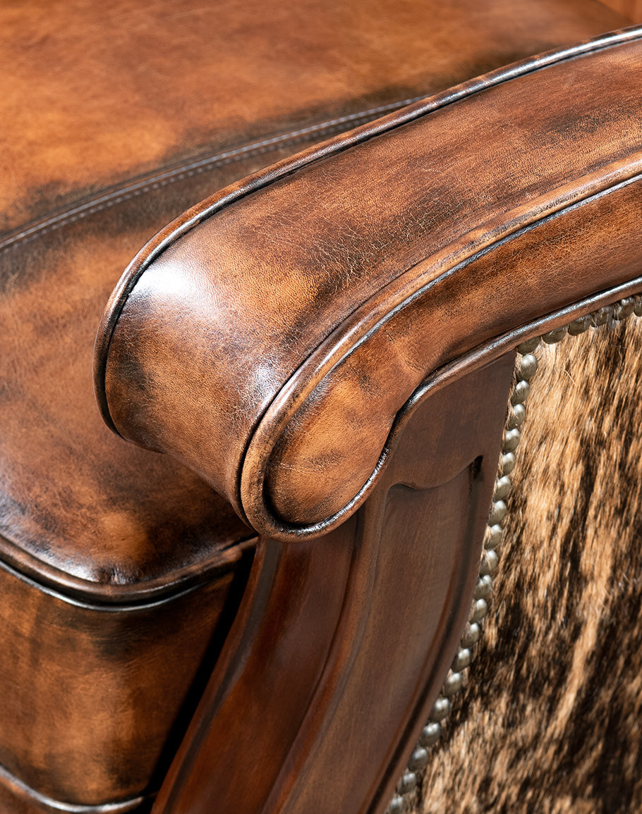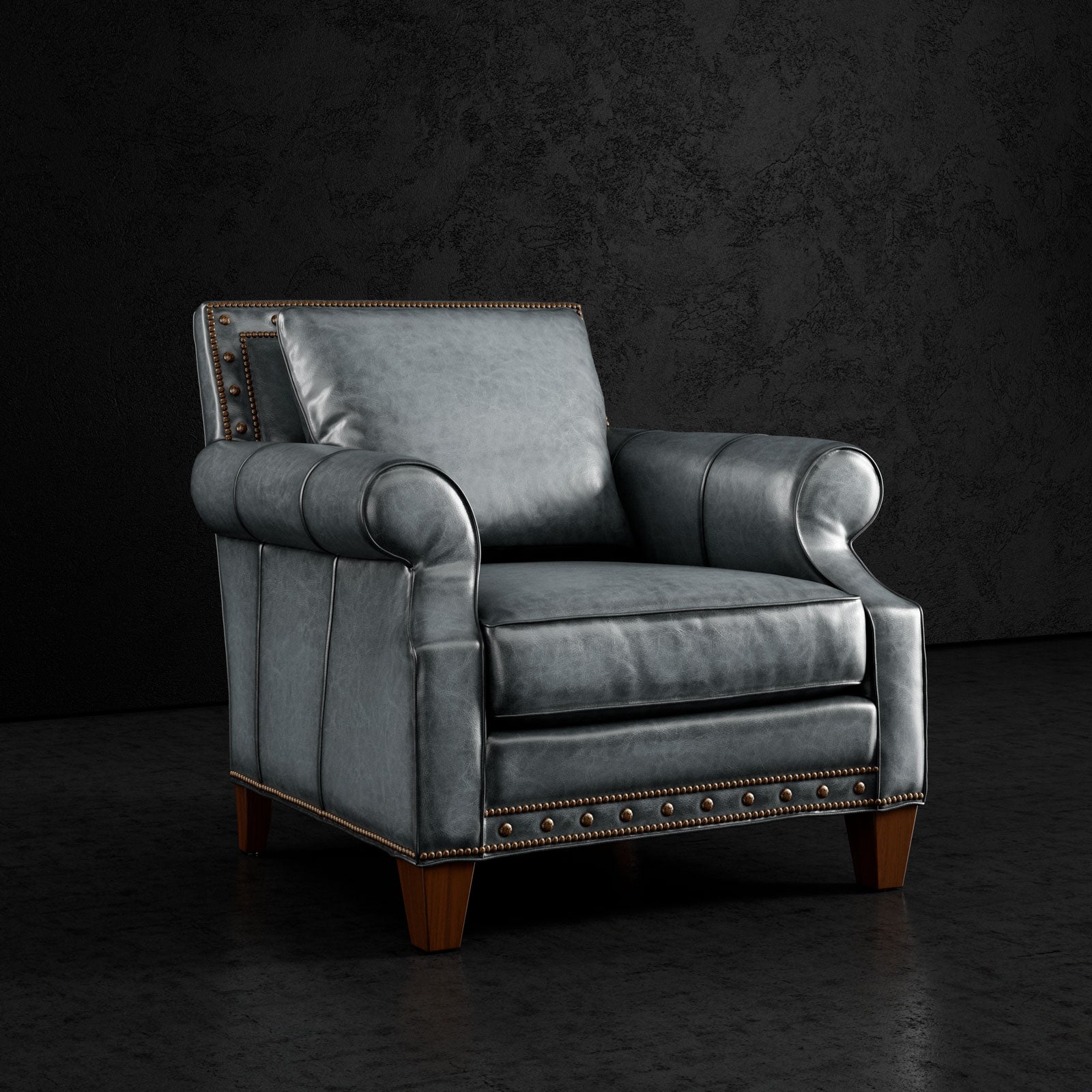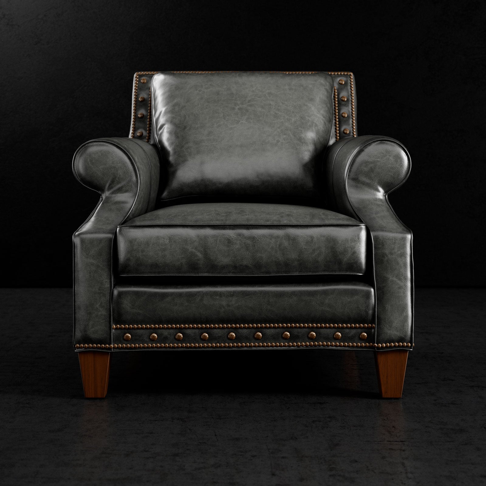 41" Chocolate And Gray Faux Leather Chair And A Half