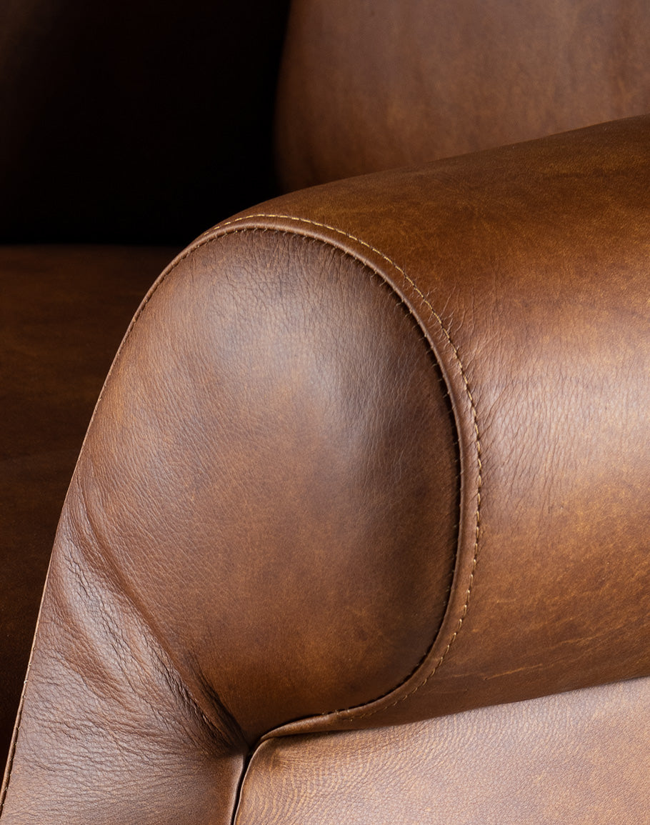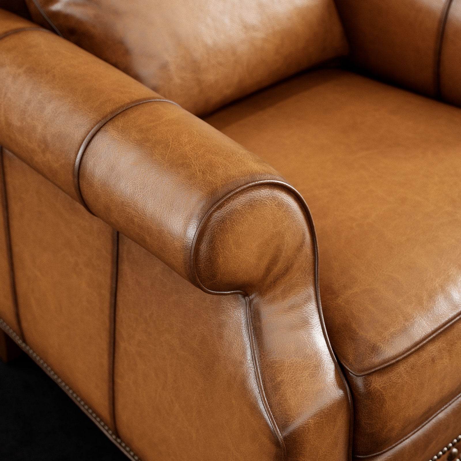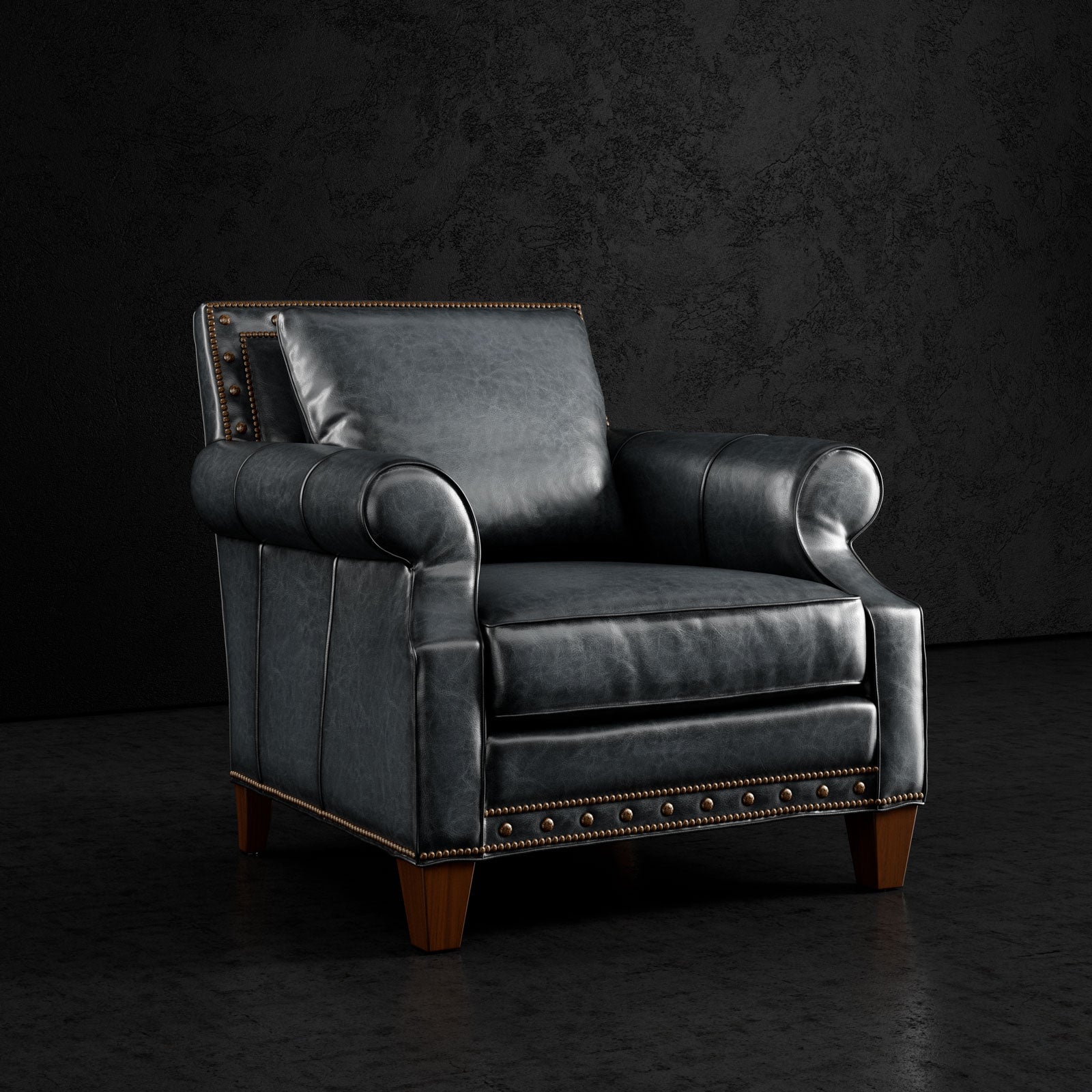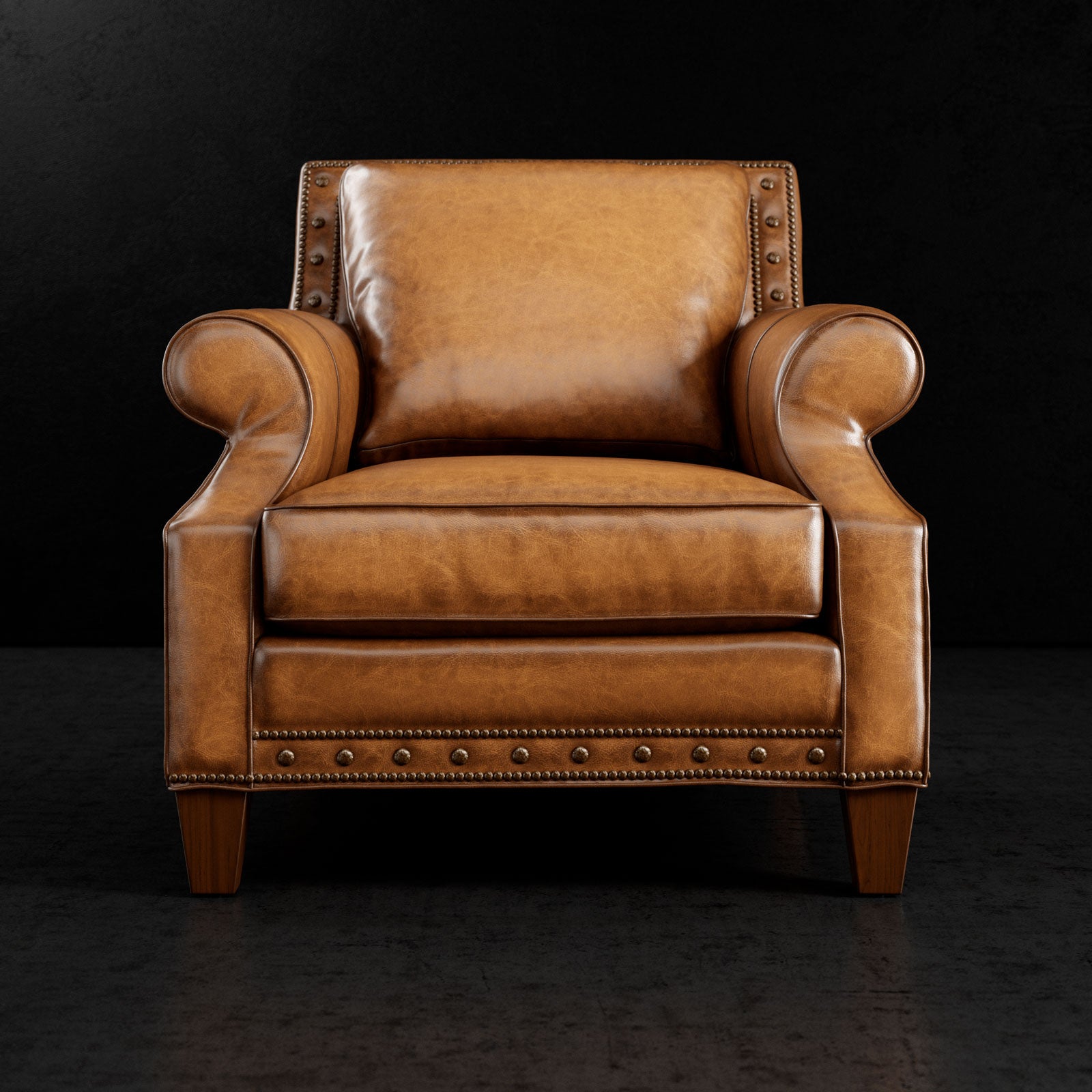 41" Chocolate And Gray Faux Leather Chair And A Half