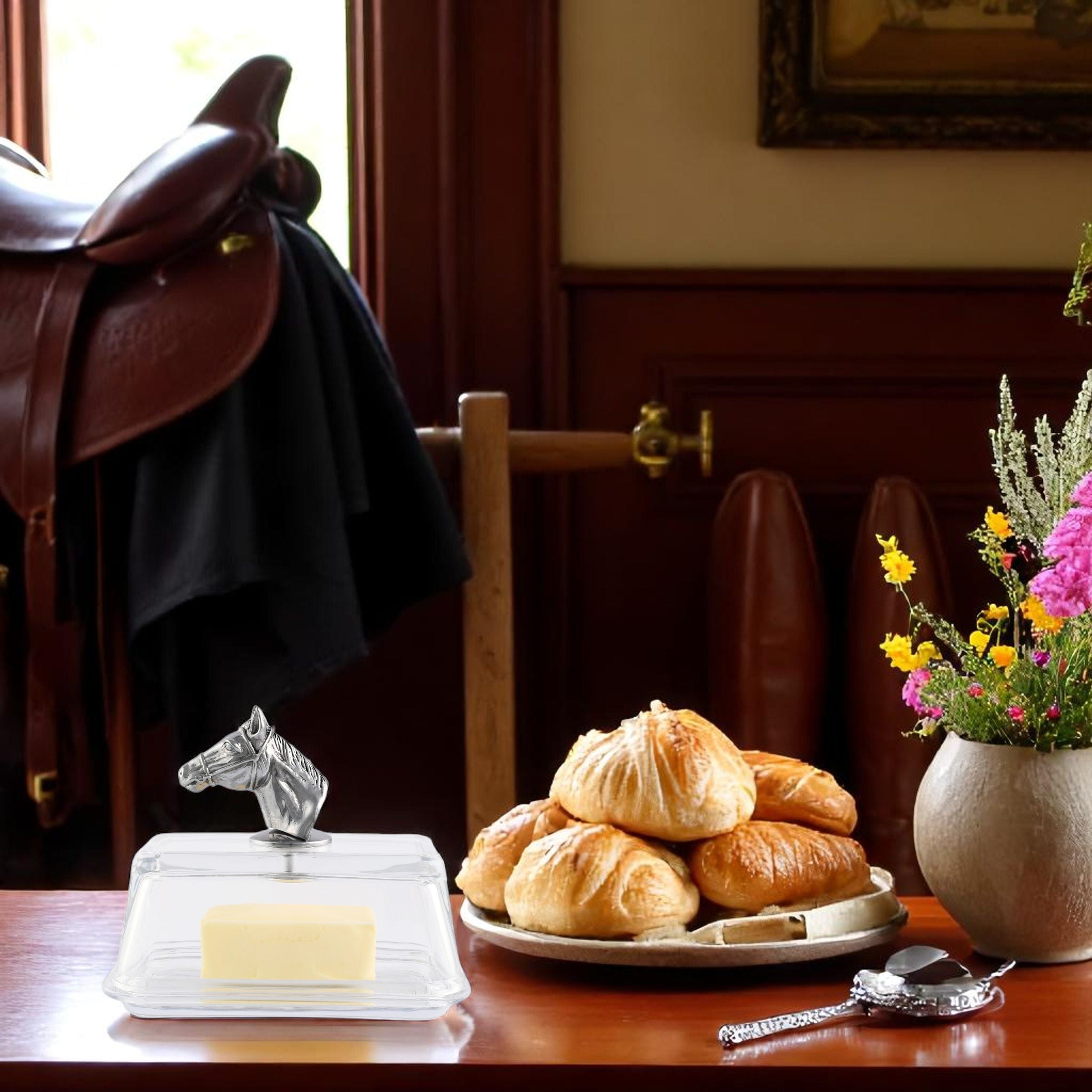 Horse Head Glass Butter Dish