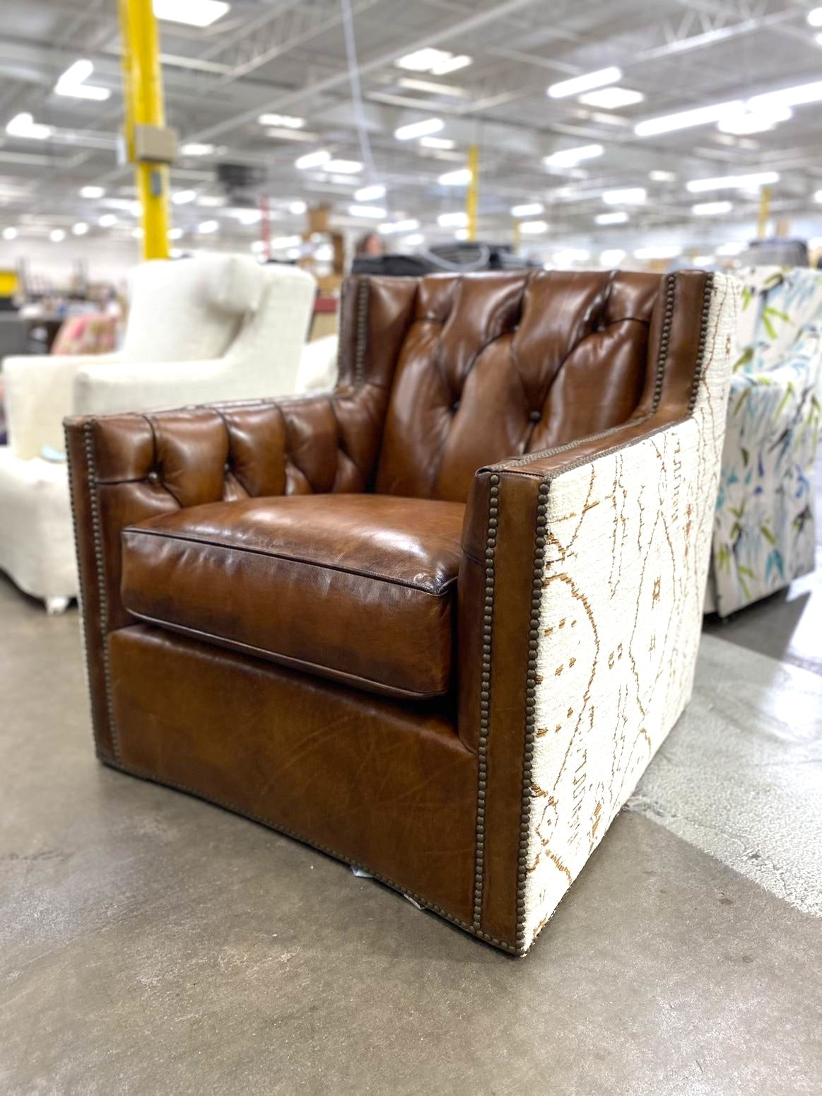 This sofa is customizable in several different leathers as well as many options for accent materials including embossed leathers, cowhide, and fabrics. Contact us if you wish to customize this style of chair. support@yourwesterndecorating.com
