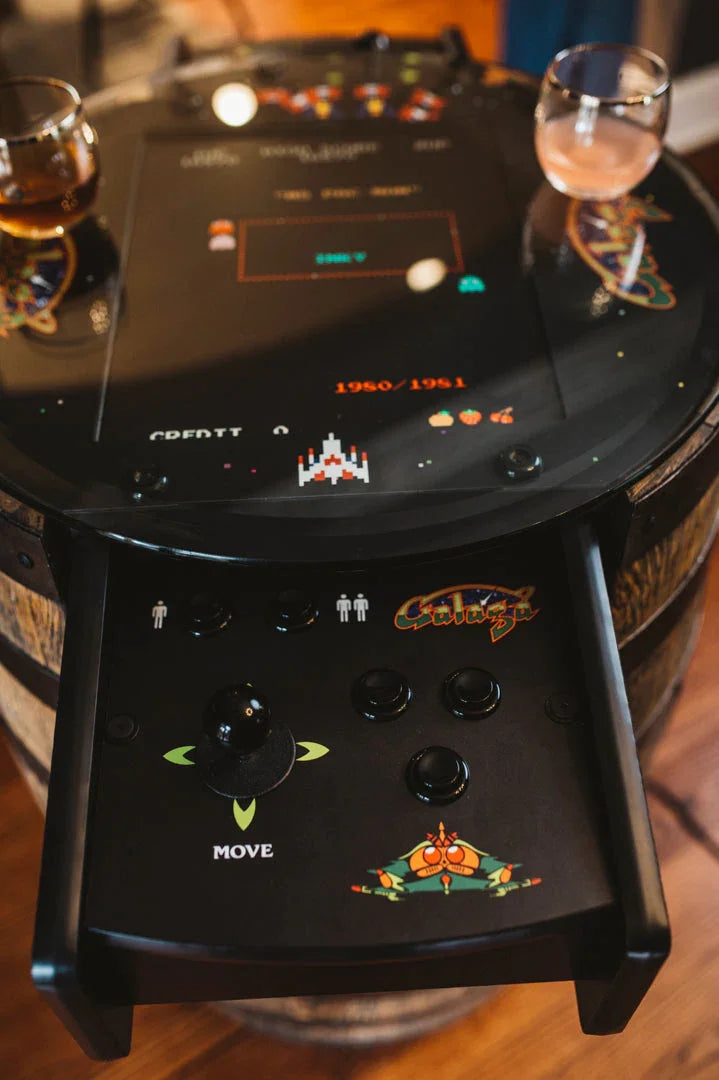 If you're looking to go retro, in rustic style, add the Whiskey Barrel Arcade to your gameroom. 100% American made. Browse our full collection of Whiskey Barrel Furniture & Decor.