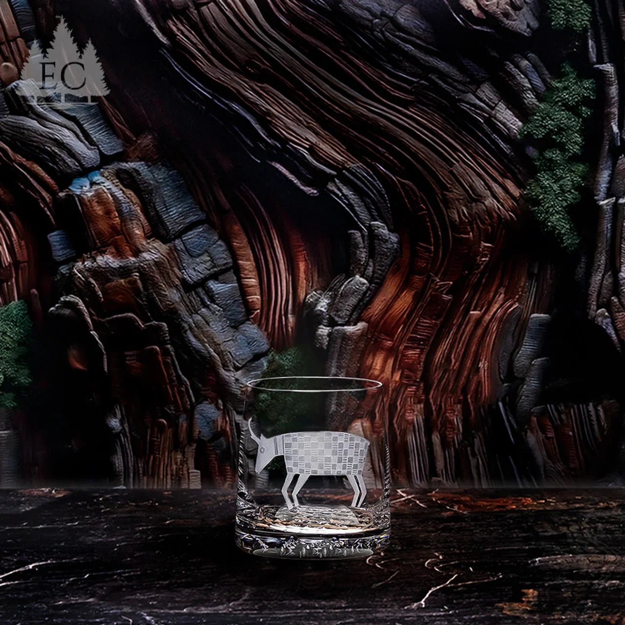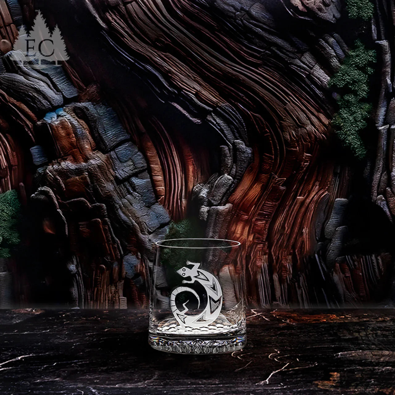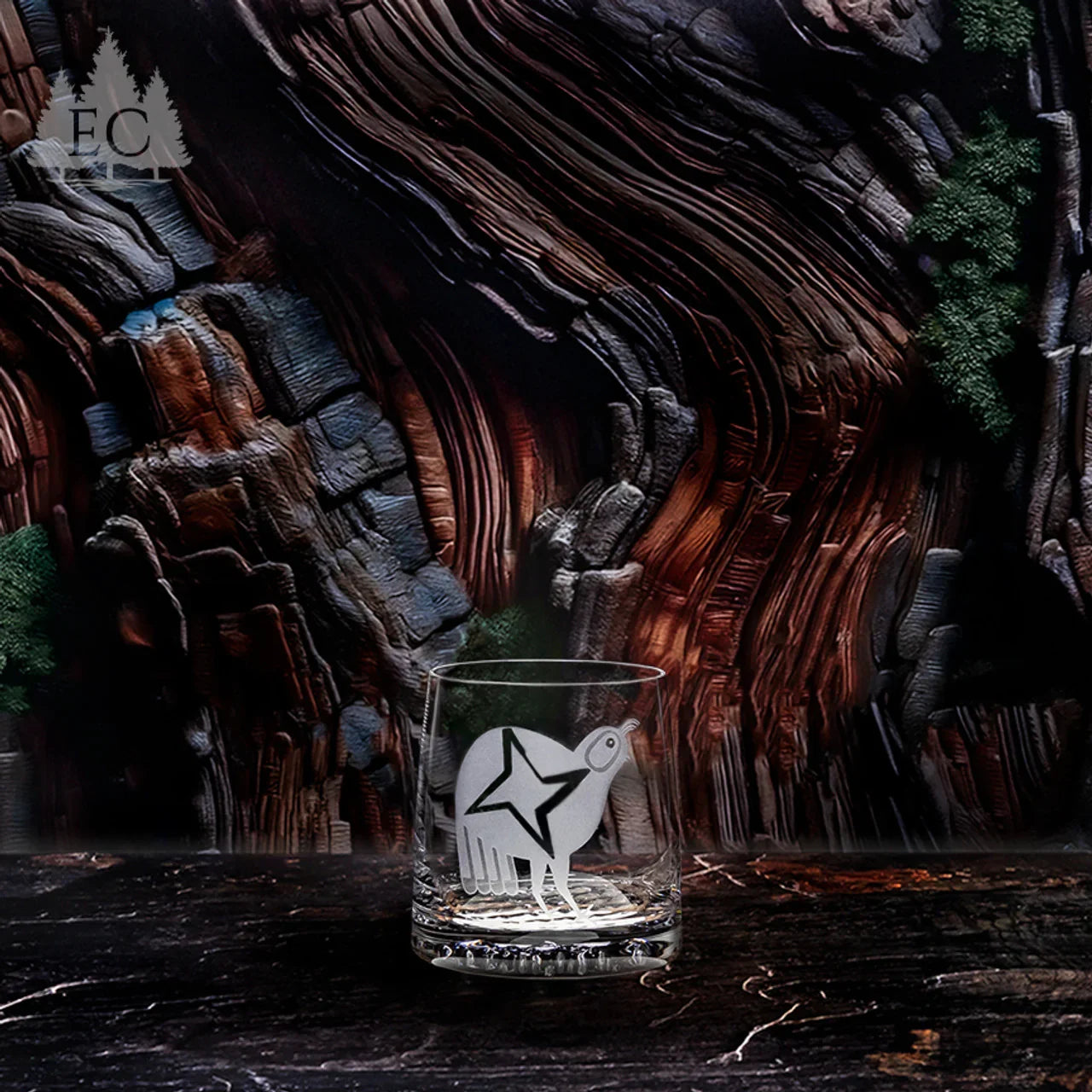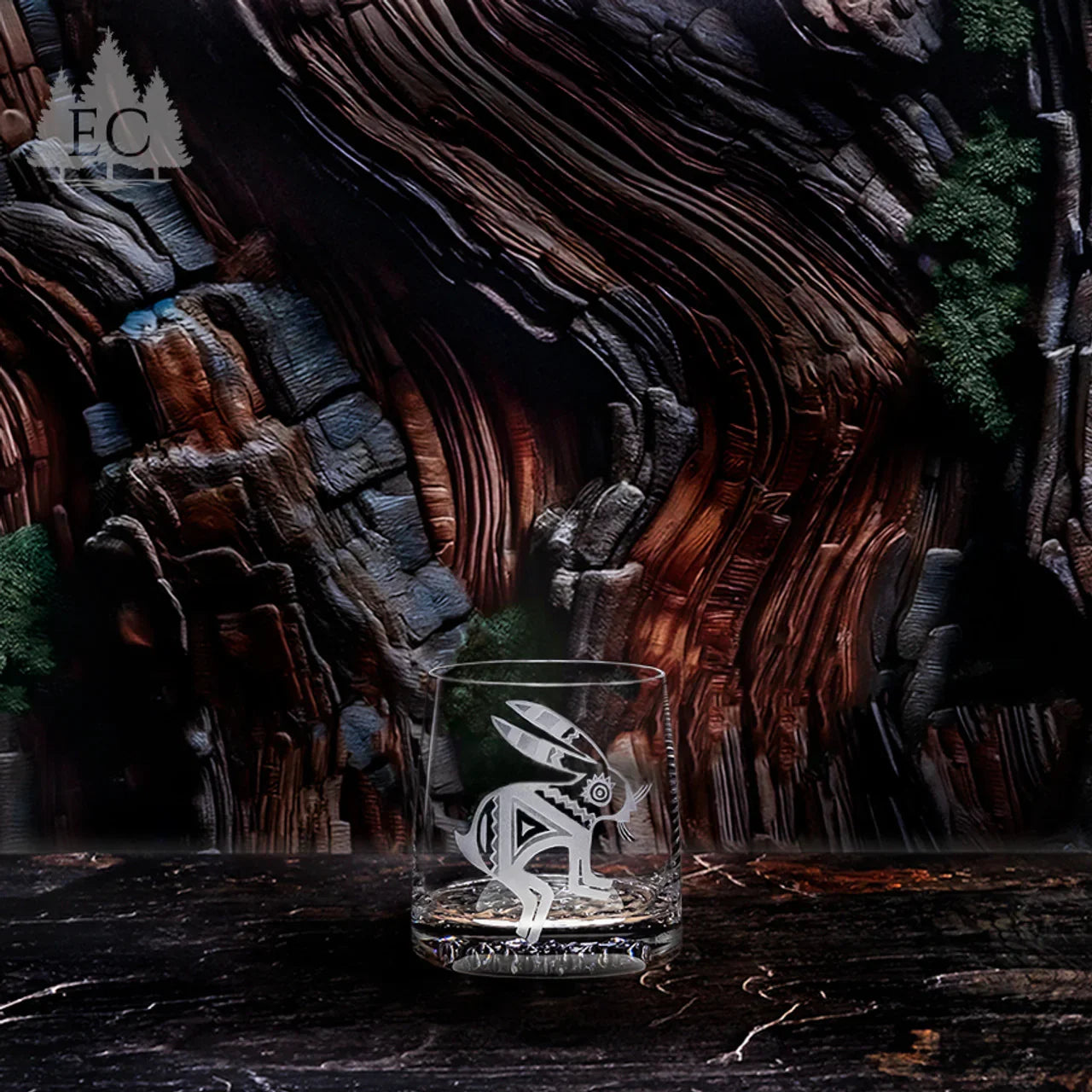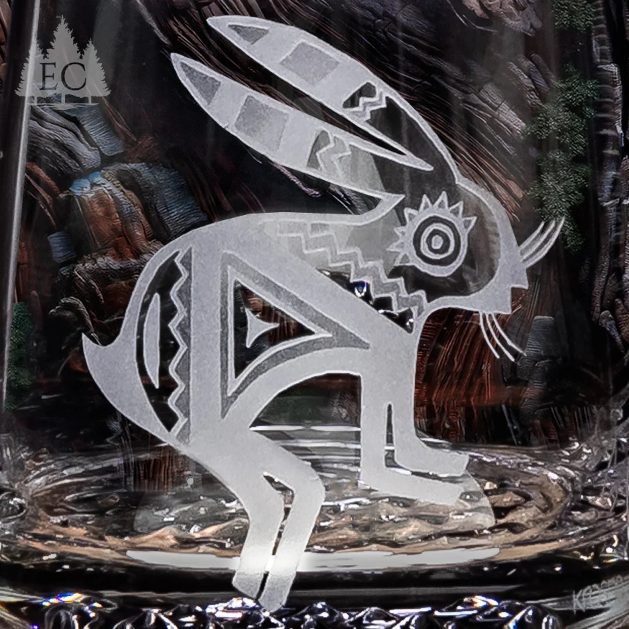 This captivating set of four Desert Guardians Crystal Rocks Glasses features iconic symbols of the American Southwest, etched with artwork by Lorraine Coyle. Each glass showcases a different desert animal image: a gecko, a rabbit, a quail, and an antelope, all deeply connected to the rich cultural heritage of the region. Perfect for sipping a favorite beverage, these glasses serve as a reminder of the enduring spirit of the Southwest.