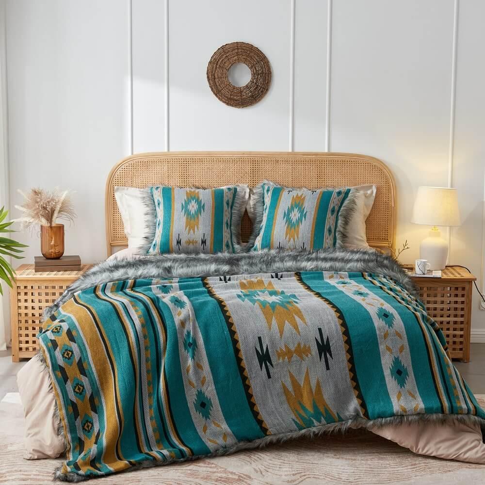 This unique Faux Fur Aztec Pillow Covers showcase a stunning woven aztec design on one side and opulent faux fur on the other. Fastened with a zipper, it guarantees a secure and cozy fit. Elevate your décor with these stunning designs.