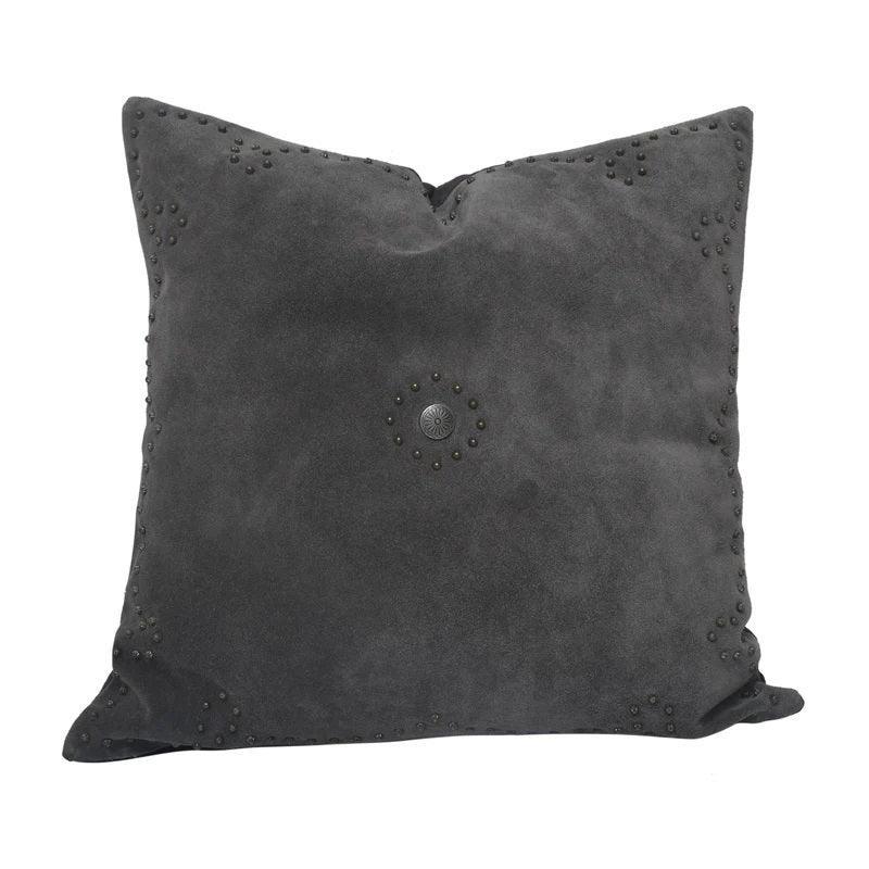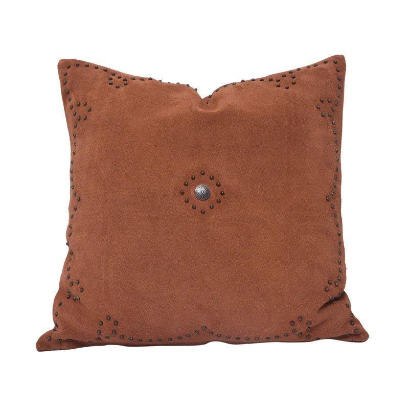 Embodying Western sophistication in every detail, our Studded Western Leather Pillows showcase a centered antiqued silver concho, enveloped by an elegant silver-studded border.