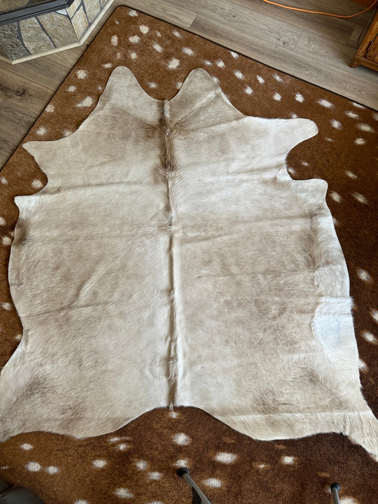 Bring stunning elegance into a space with a Brazilian Champagne Ivory Cowhide Rug.