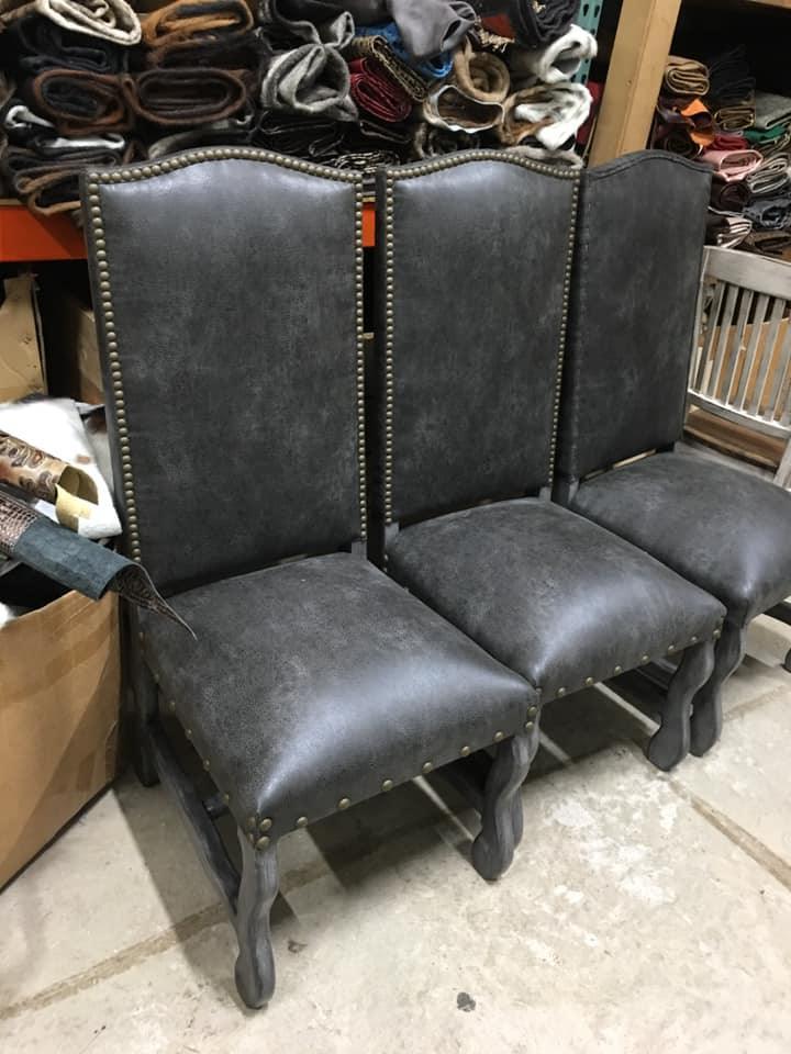 The chairs here are shown in various leathers, materials and frame finishes as well as our style with arms. As you can see, customizing your chairs to fit your exact style is very possible. Just contact us with your ideas.