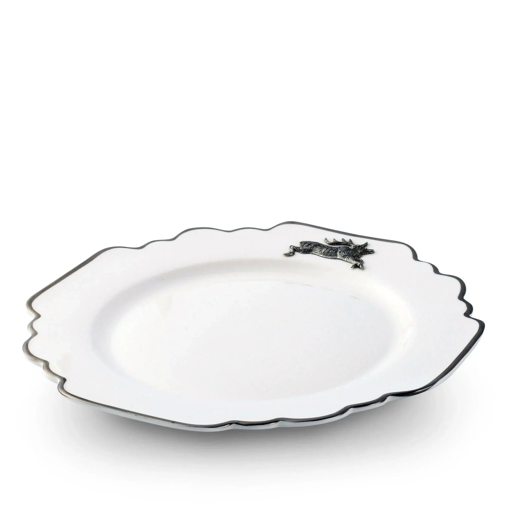 Talented artisans have crafted a noble running elk bursting with realistic detailing and dynamic movement. The majestic embellishment is complemented by a platinum rim on all pieces to bring a touch of rustic elegance to your dining experience.