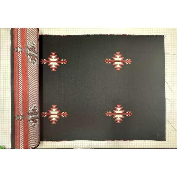 Elevate your interiors with the Phantom Ranch Coal Upholstery Fabric. Featuring a striking mix of black, red, grey, and white, this classic color scheme adds a touch of elegance. Its design seamlessly fits southwestern charm as well as modern aesthetics, making it a versatile choice for any setting.