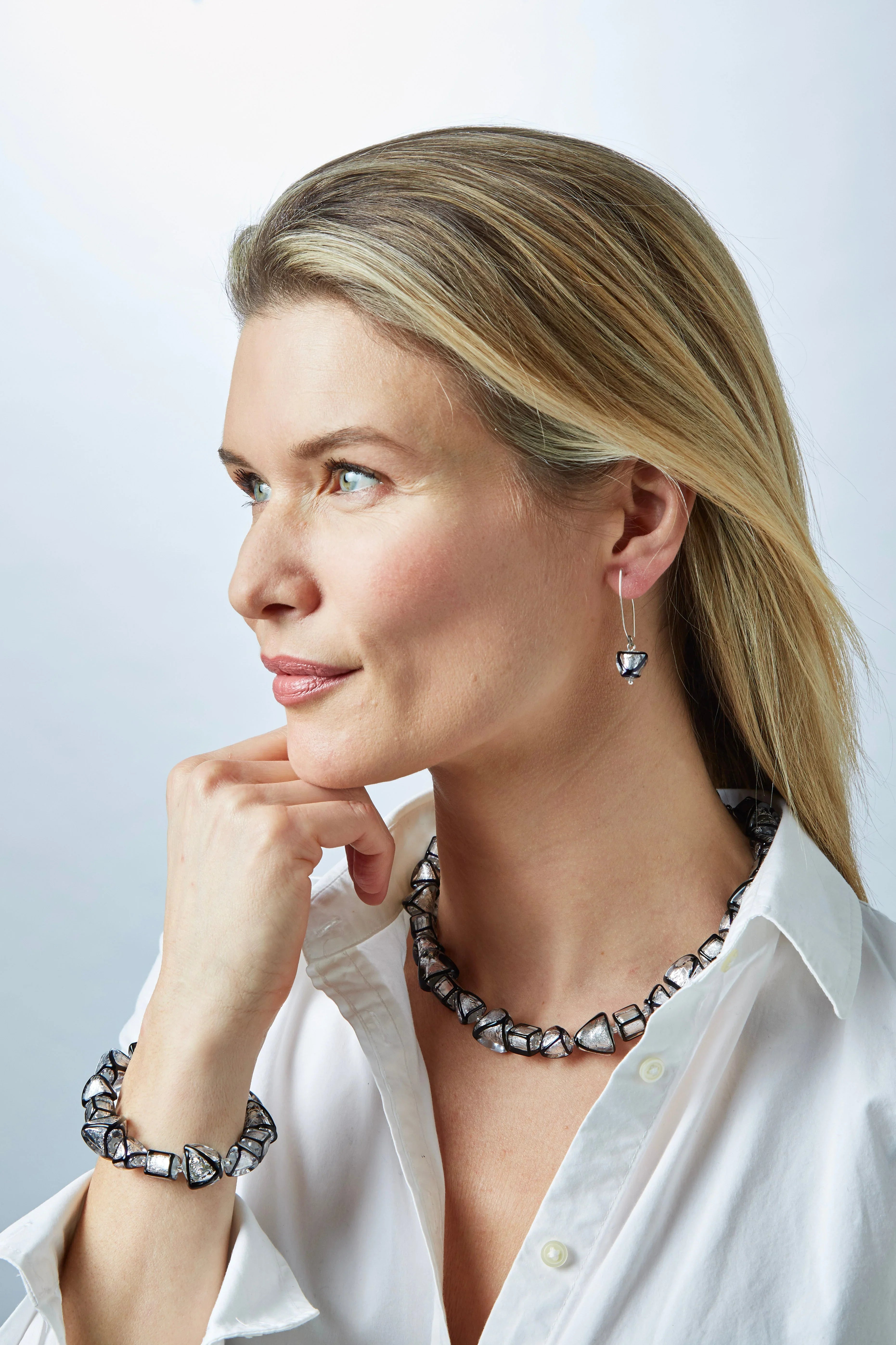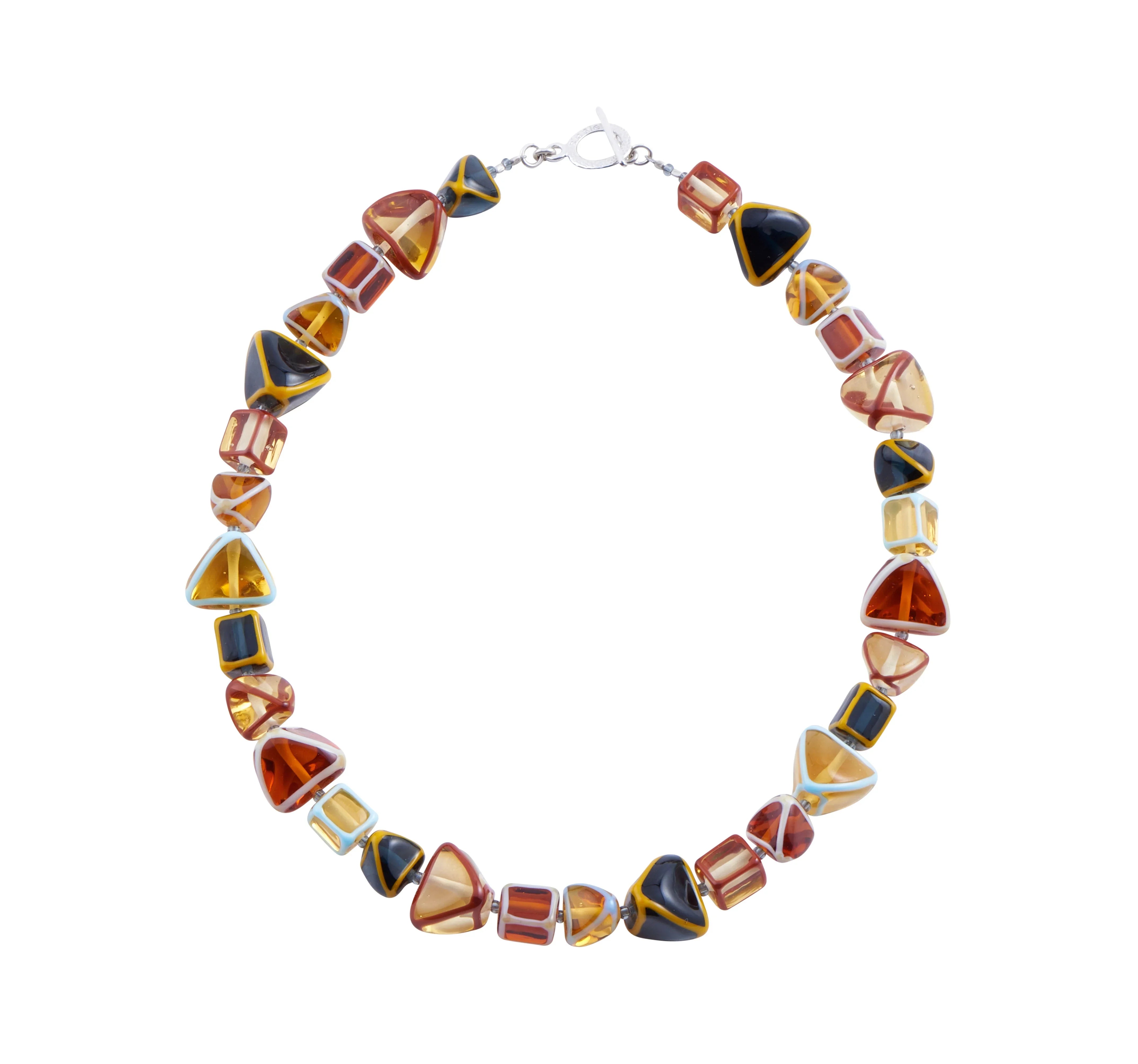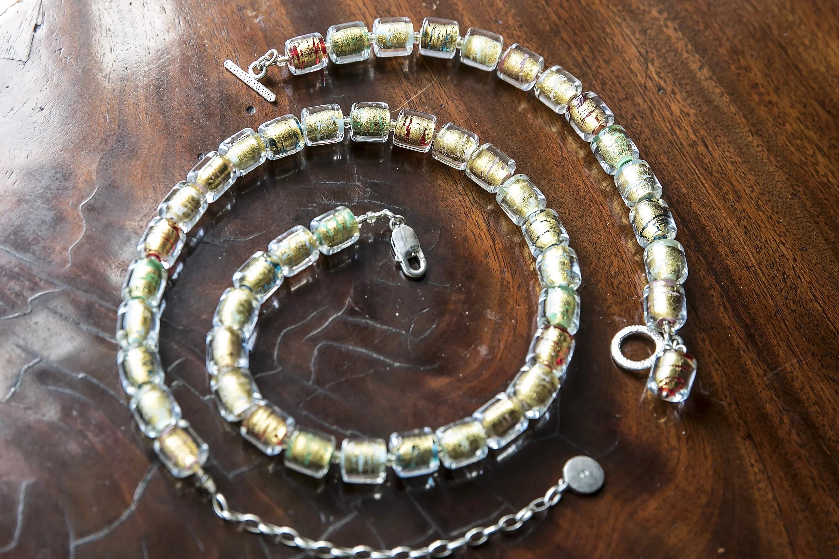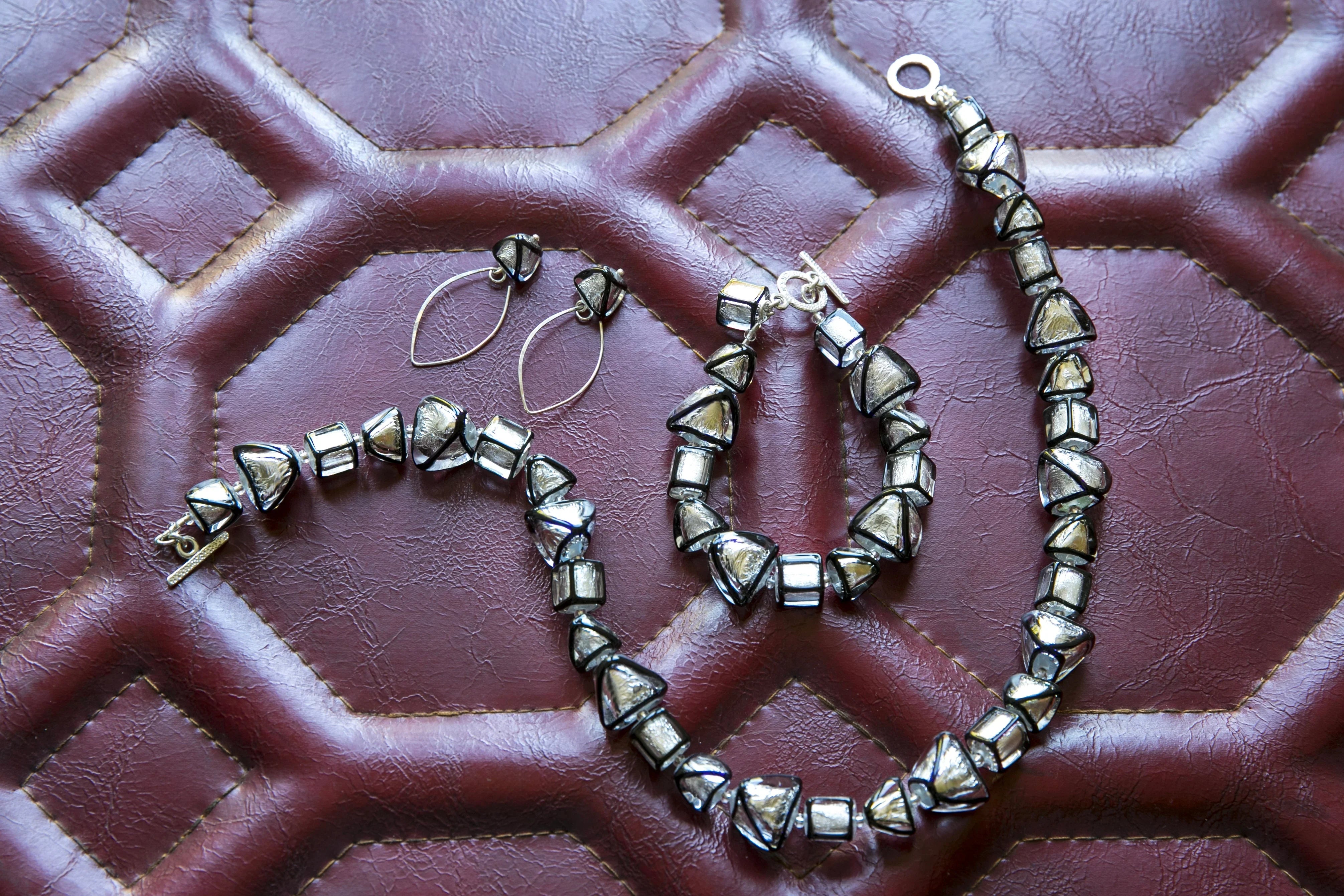Handmade Silver & Glass Necklace, Earrings & Bracelet - Golden