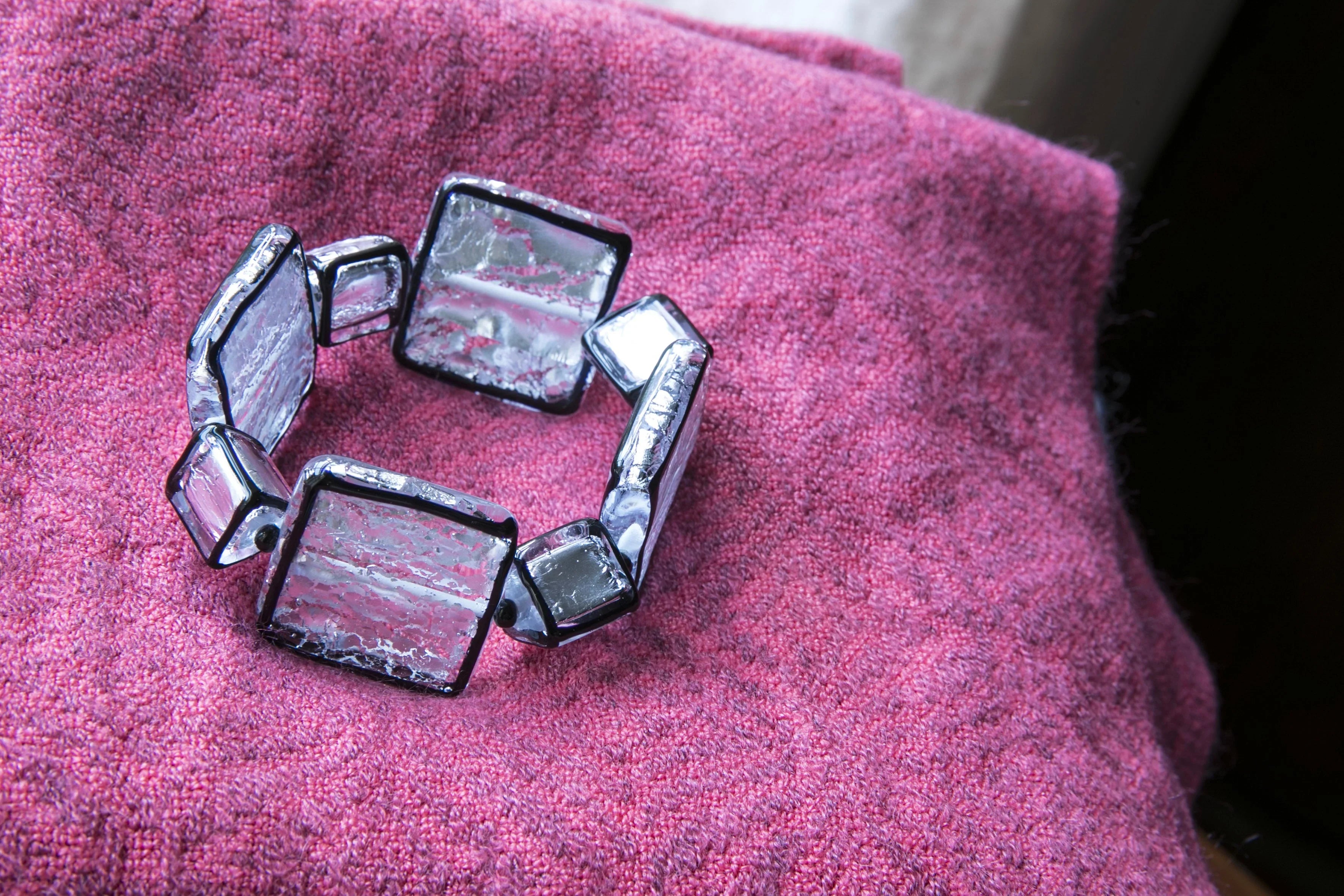 Handmade Silver & Glass Bracelet - Berry and Blue