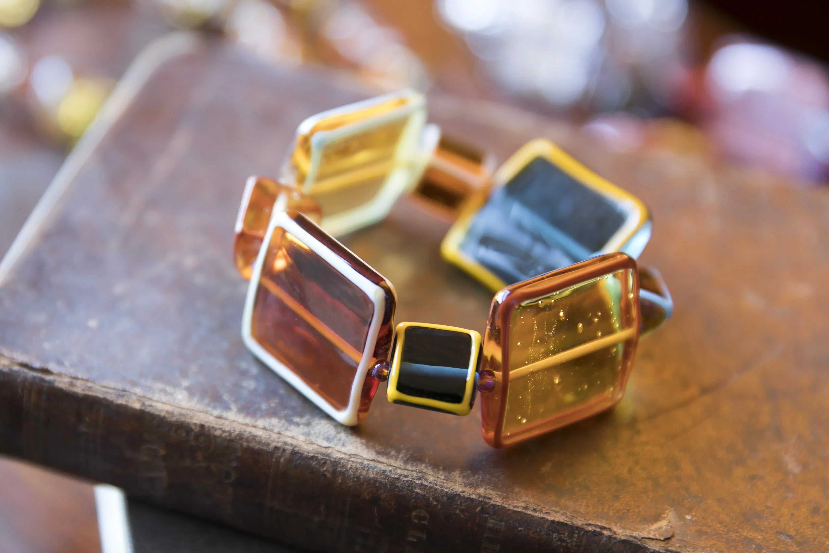 Handmade Silver & Glass Bracelet - Honey and Blue