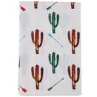 Bright and colorful, this tea towel set features cacti and arrows in hues of red and blue. Imported.