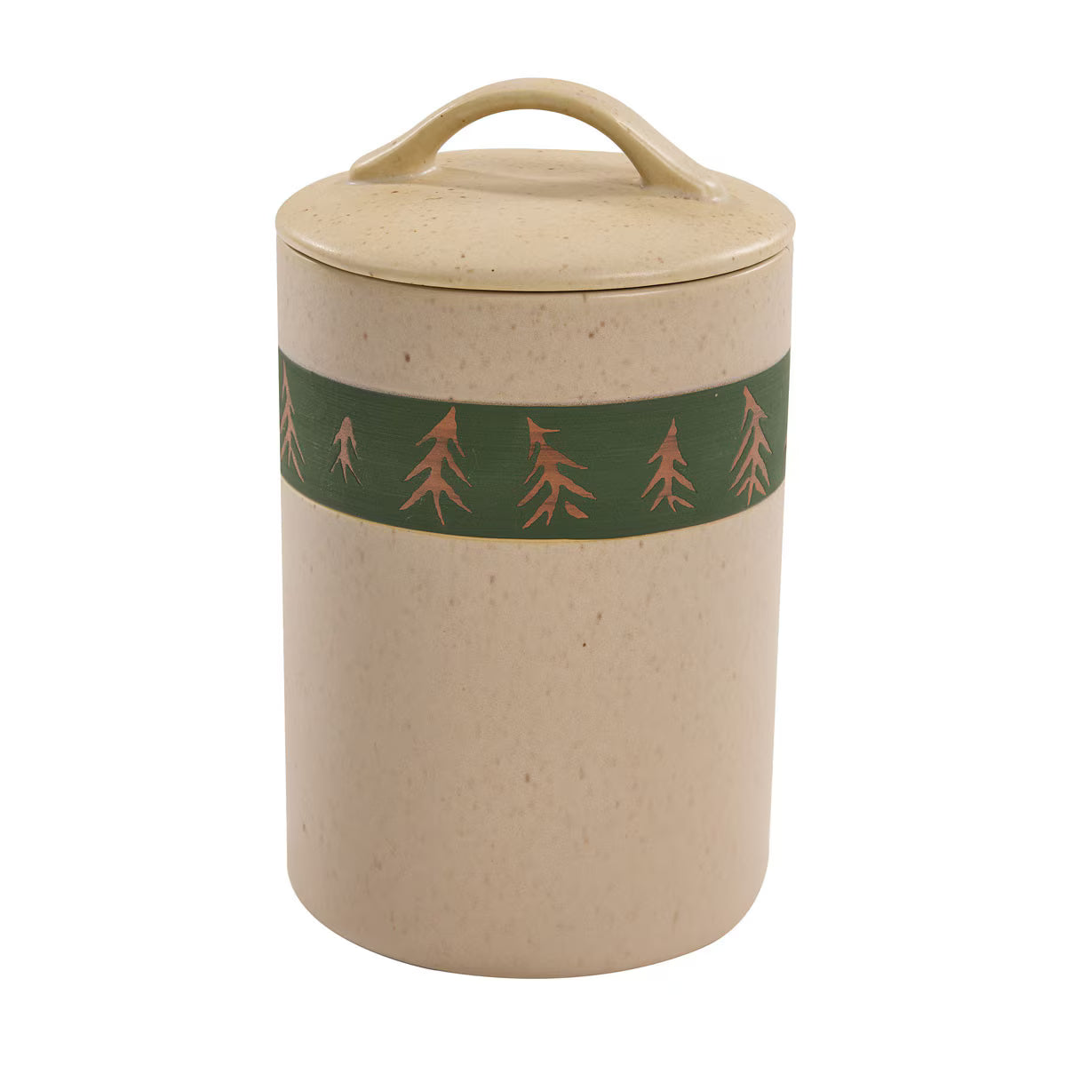 Crafted from durable stoneware, each canister showcases the signature artisan look of the Evergreen Pines collection. The neutral speckled glaze paired with the deep green pine tree band adds natural warmth to countertops while blending effortlessly with rustic, lodge, mountain, and cabin décor.