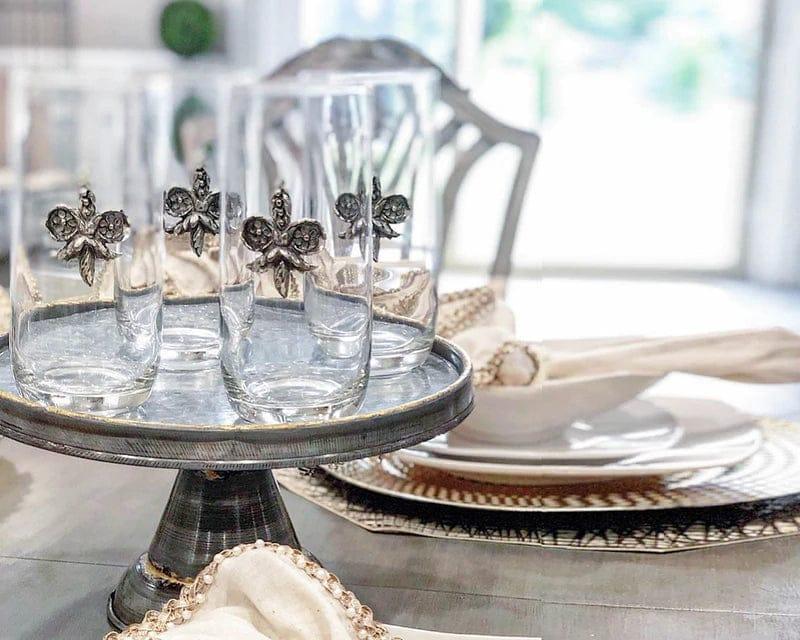 Our Pewter Embellished Fleur de Lis Tumblers are tall, cool all-purpose glasses. They are perfect for drink service anytime.