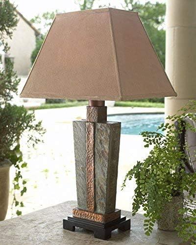 Indoors or outdoors, our Hammered Copper & Slate Table Lamp adds a touch of modern rustic charm with its artfully crafted hammered copper and hand-hewn slate stone. Complete with a brushed suede weather-proof shade, it brings a cozy ambiance to any space indoors, or out.