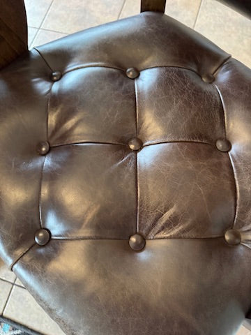 Top-grain cowhide leather features natural variations in color, texture, grain, and healed markings. These characteristics are hallmarks of authentic leather and enhance the unique beauty of each handcrafted barstool.