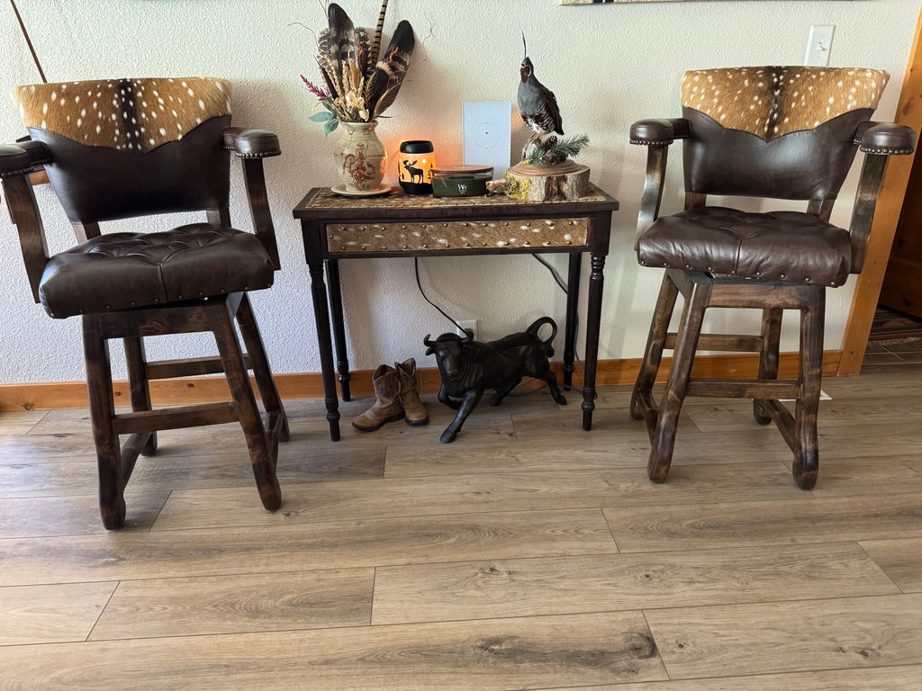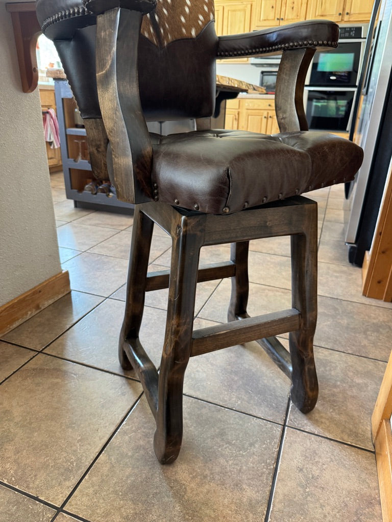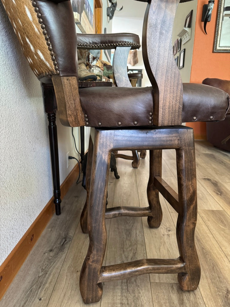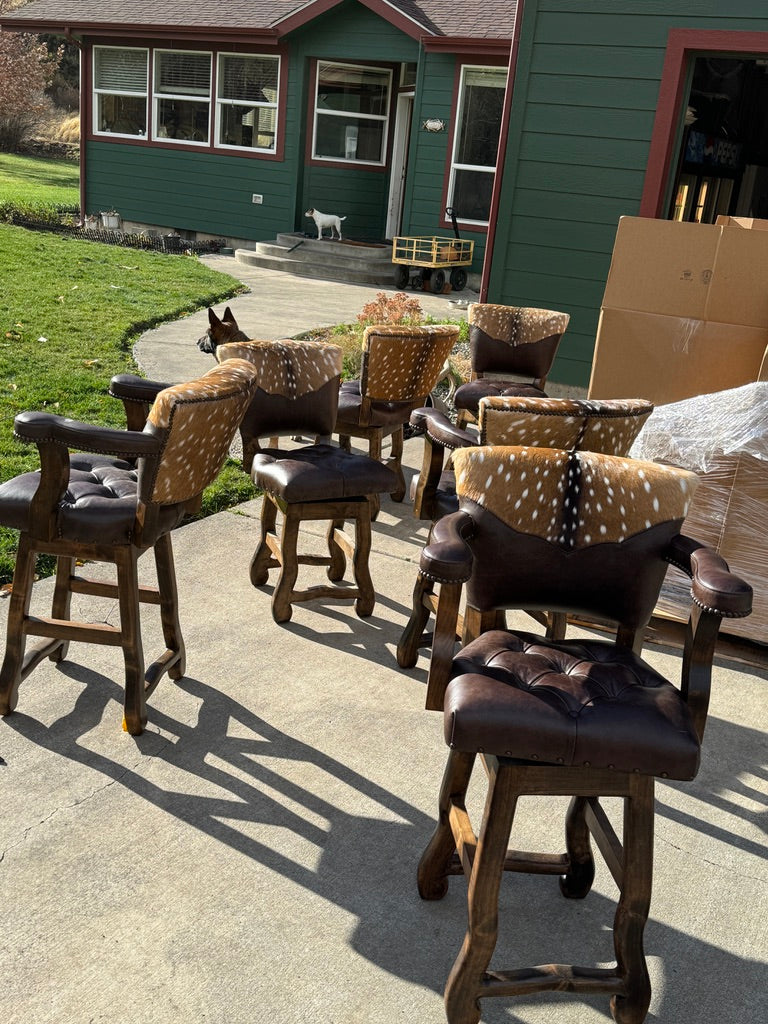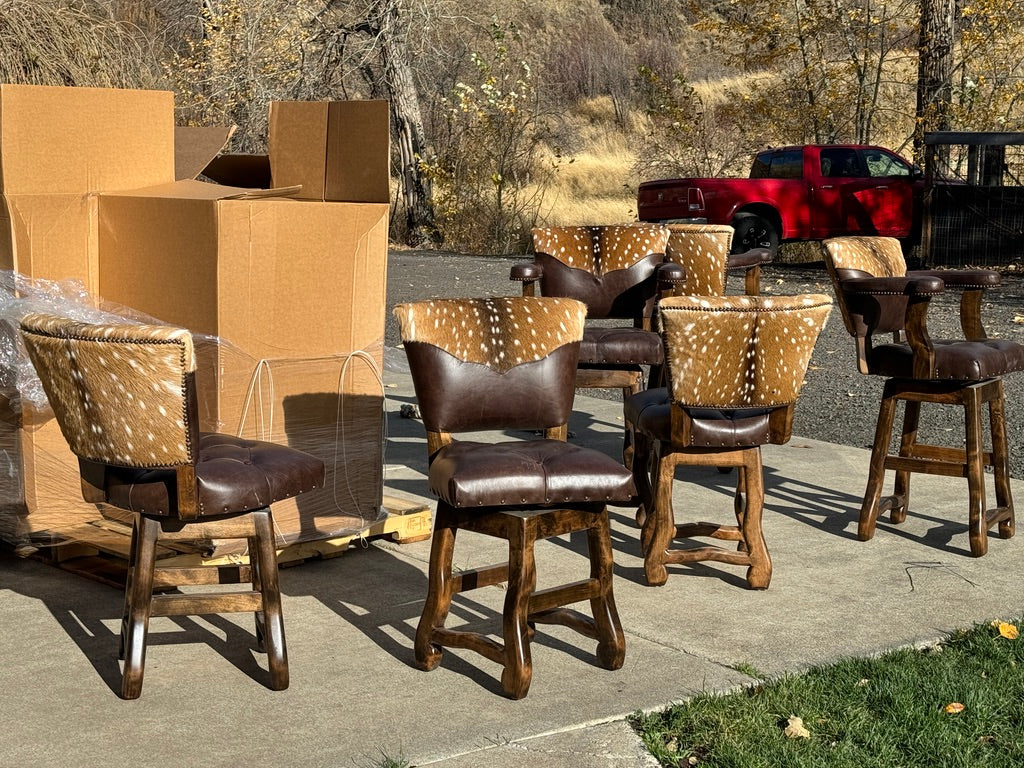 Rustic sophistication meets refined craftsmanship in our Axis Back Leather Bar Stool with Swivel. Designed to bridge the charm of Western living with upscale urban style, this luxury leather barstool delivers striking presence, exceptional comfort, and enduring quality. It’s equally at home in a ranch kitchen, lodge bar, or high-end entertaining space.