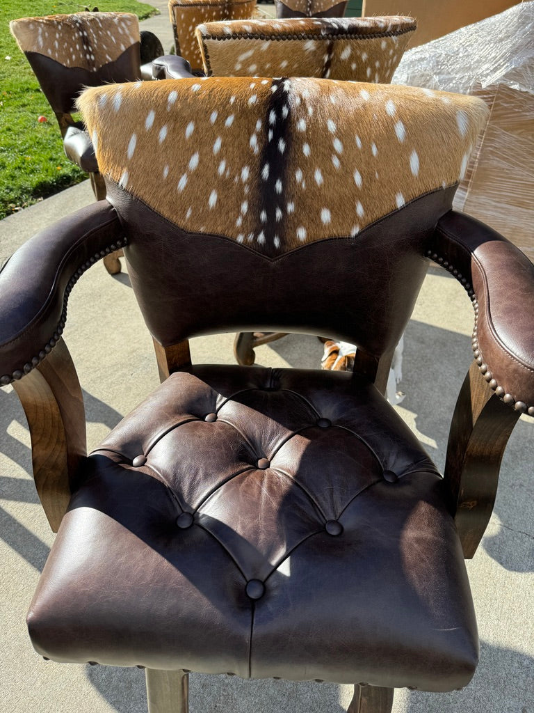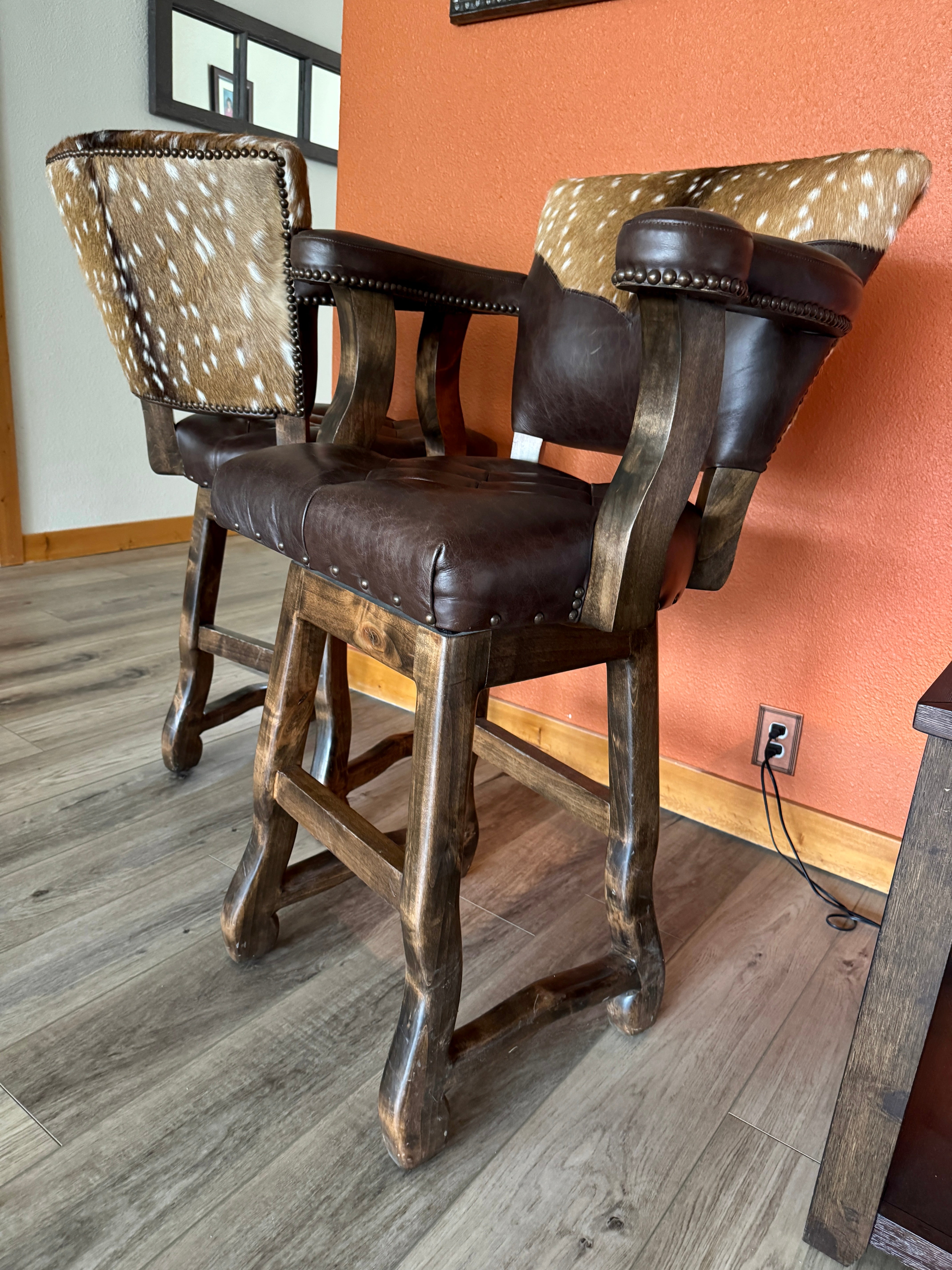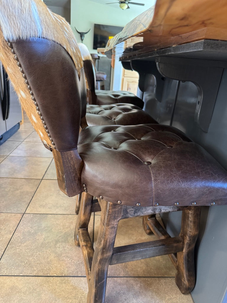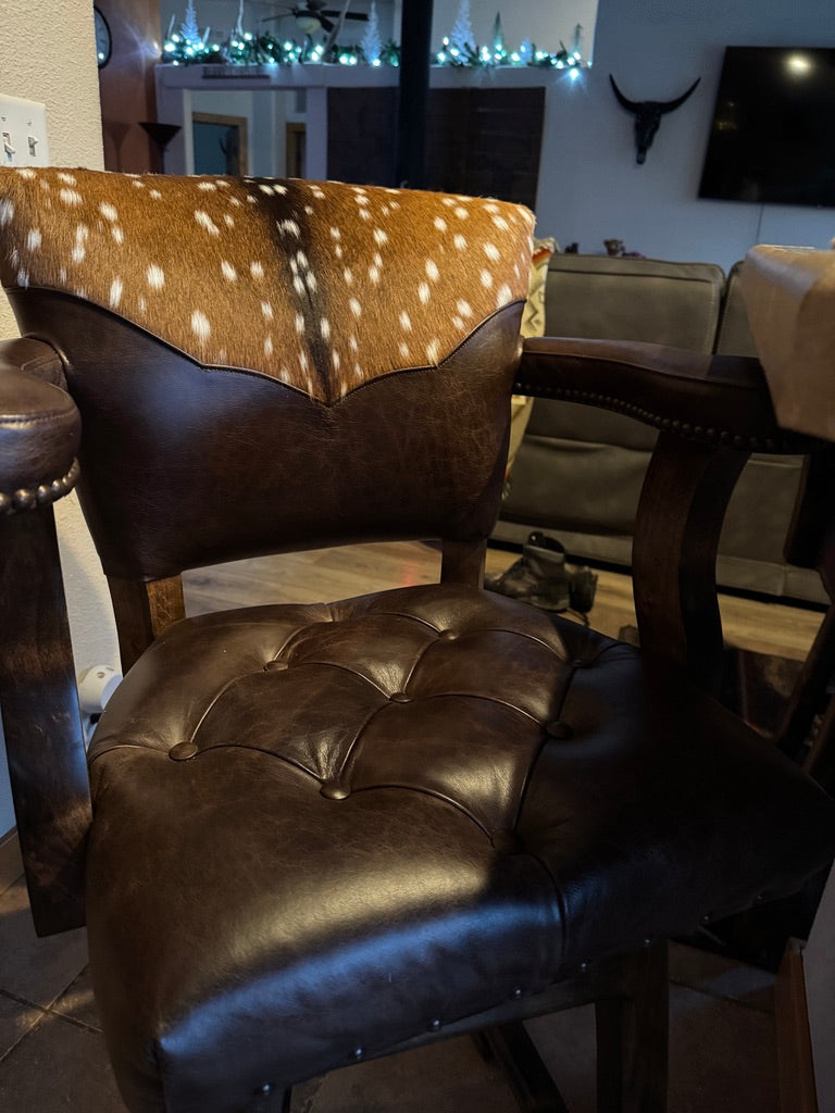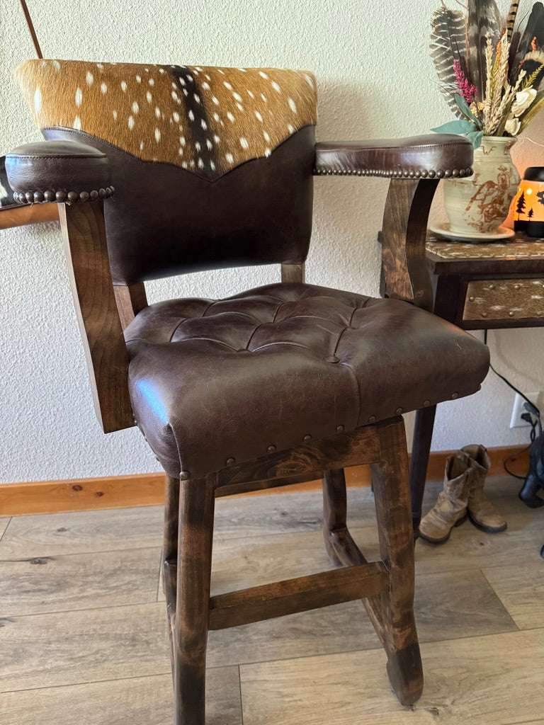 Rustic sophistication meets refined craftsmanship in our Axis Back Leather Bar Stool with Swivel. Designed to bridge the charm of Western living with upscale urban style, this luxury leather barstool delivers striking presence, exceptional comfort, and enduring quality. It’s equally at home in a ranch kitchen, lodge bar, or high-end entertaining space.