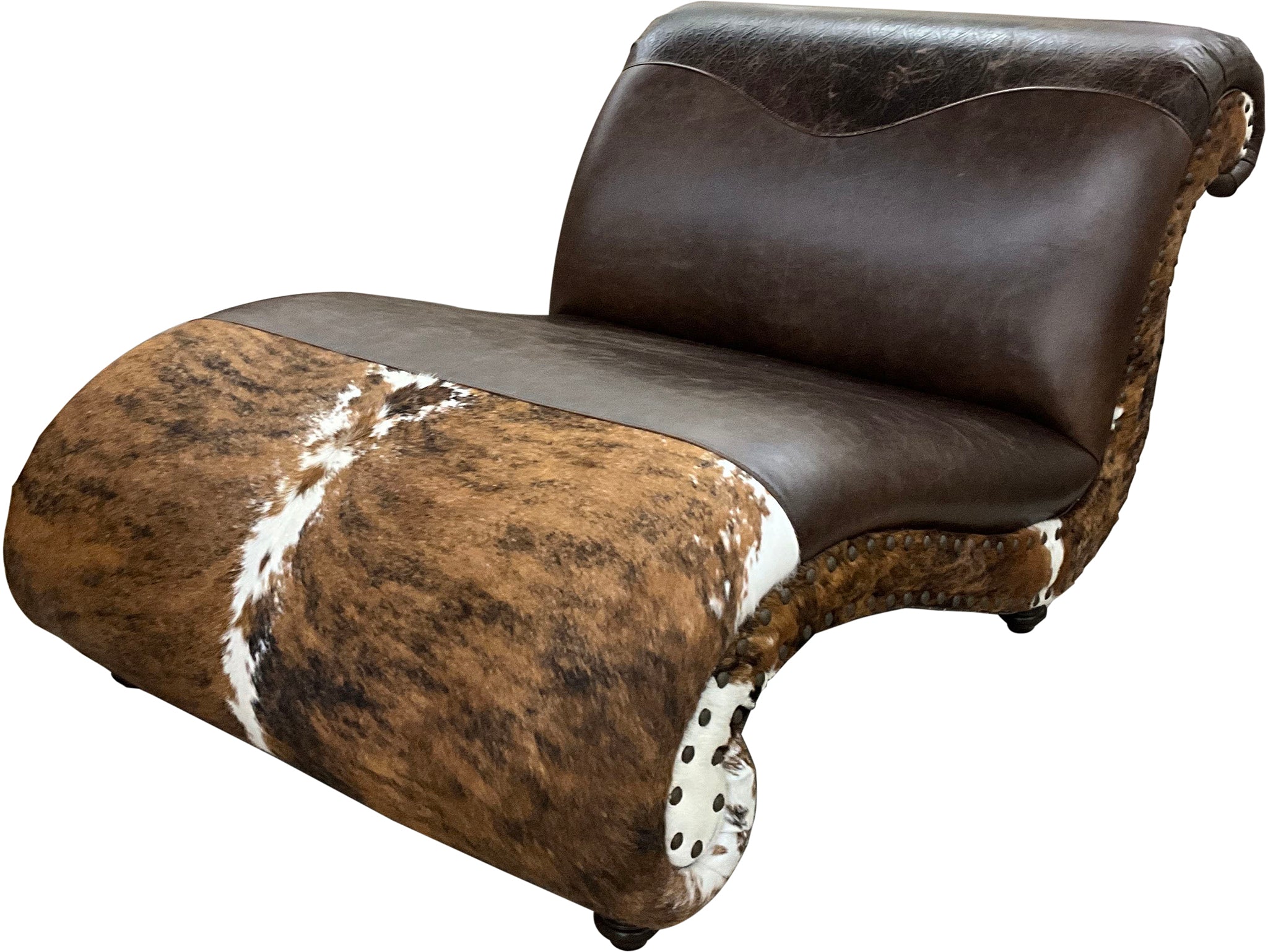Discover a whole new level of western elegance with our Ranchers Chaise Lounge. Customize your own luxurious chaise with a selection of authentic leathers and cowhide options. The unique s-curved design molds to your body, while the elegant shape and sweeping façade exude a touch of sophistication.