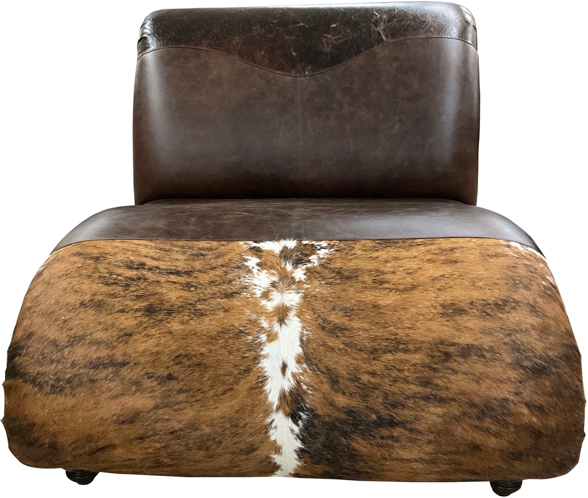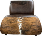 - Upholstered with genuine hair-on cowhide and full Aniline dyed top grain leathers.