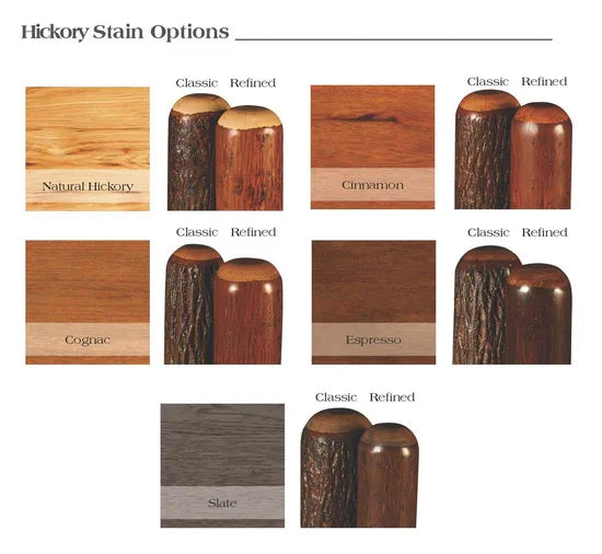 - Choose from 2 log styles and 5 finishes: Classic (with sanded bark) or Refined (with bark removed).