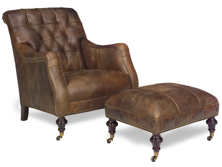 Rye Whiskey Tufted Leather Chair & Ottoman