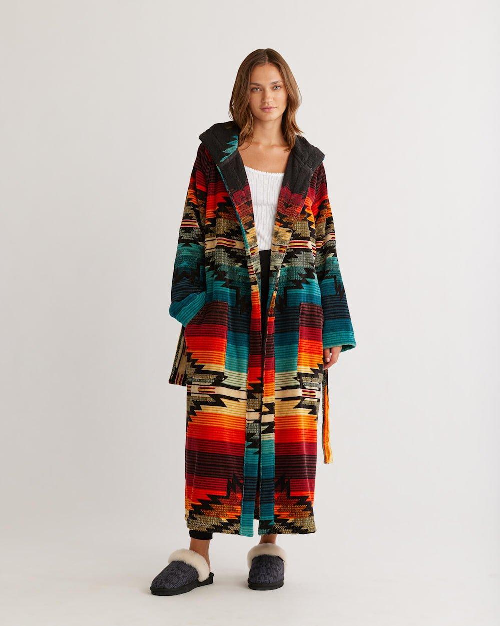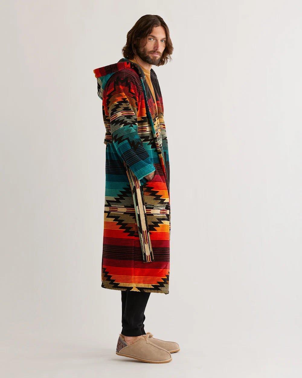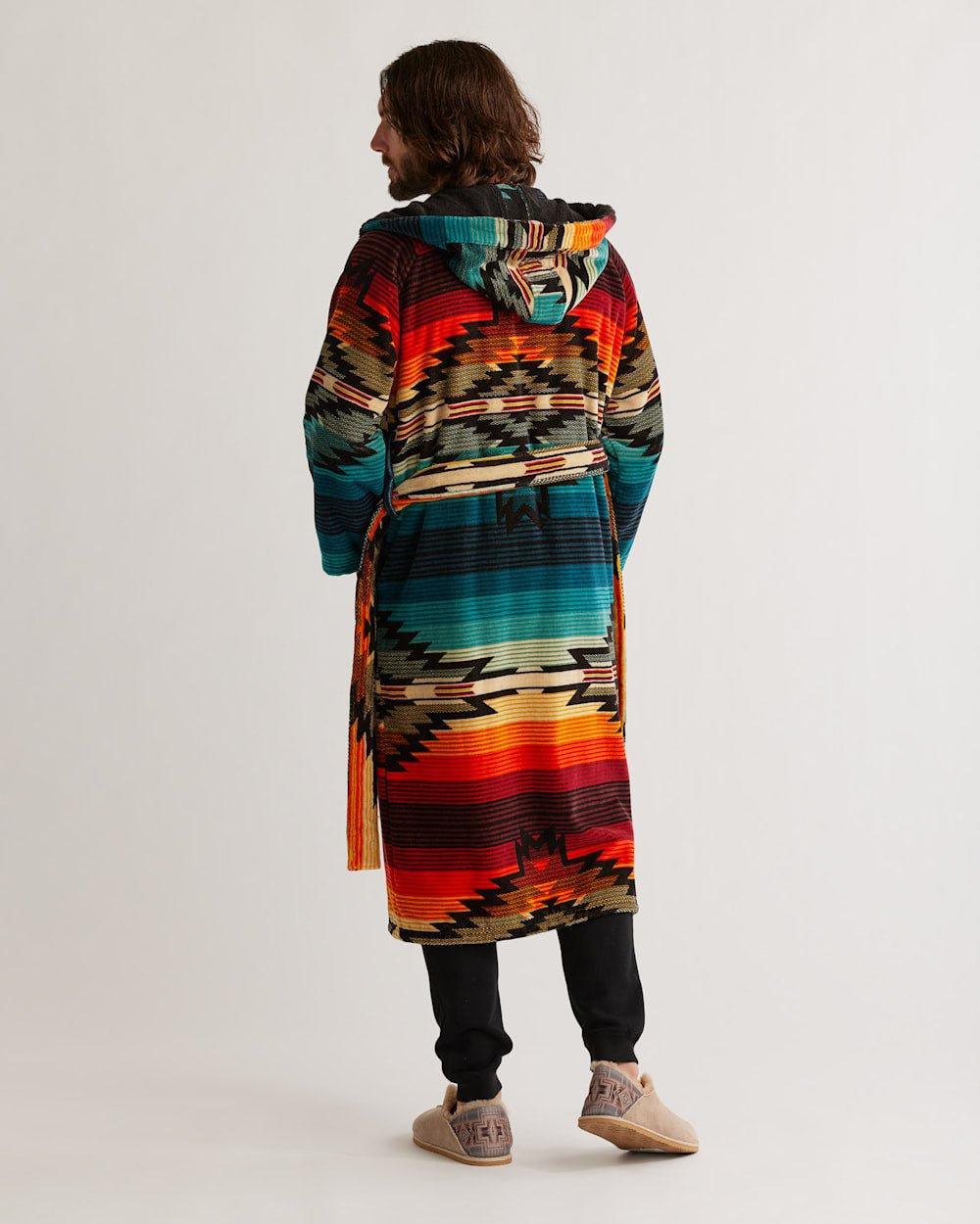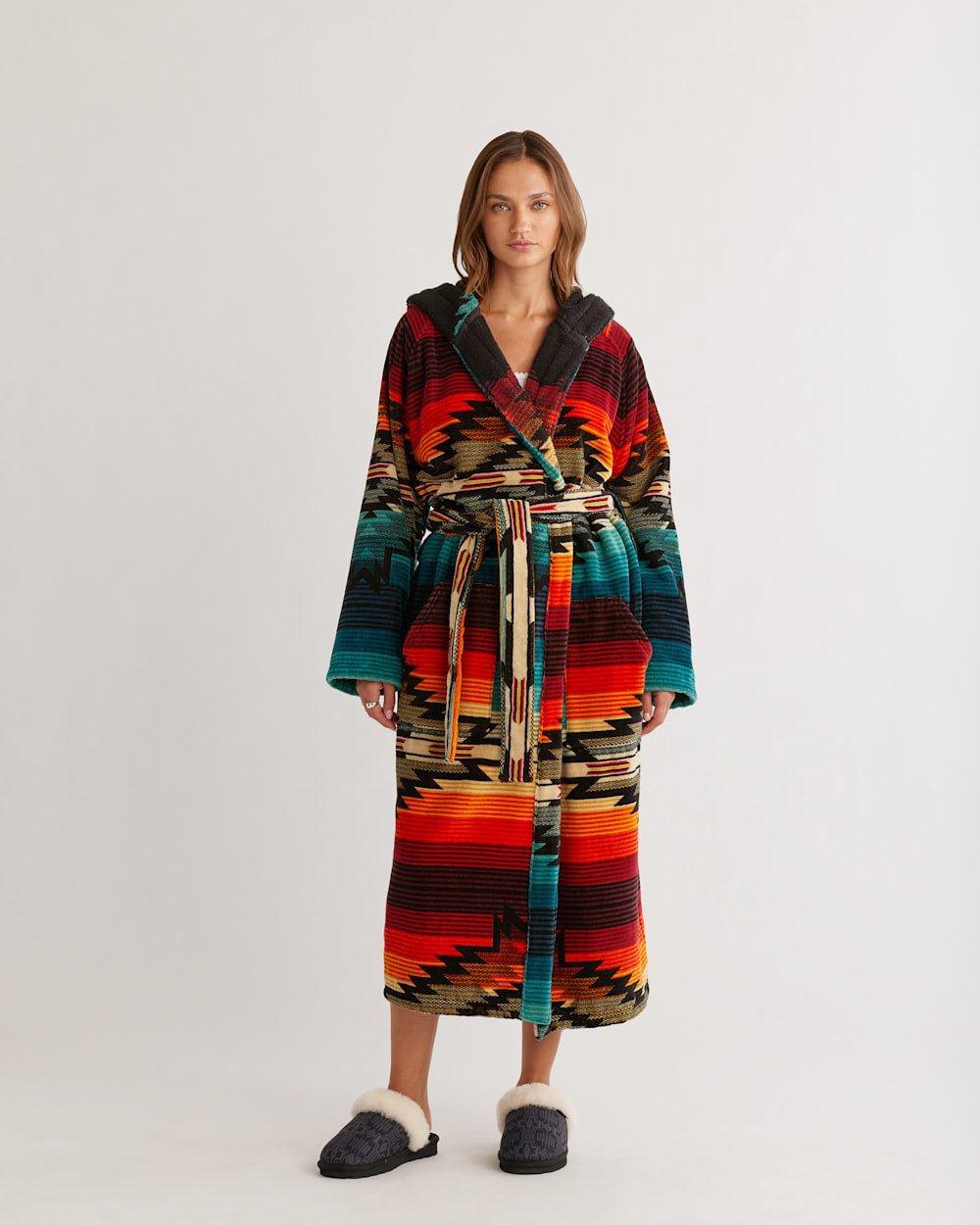Indulge in the luxurious comfort of this pure cotton robe, featuring a soft velvety exterior and absorbent interior loops. With its generous hood, two deep pockets, and self-fabric waist tie, this robe offers a unisex fit and ultimate relaxation.