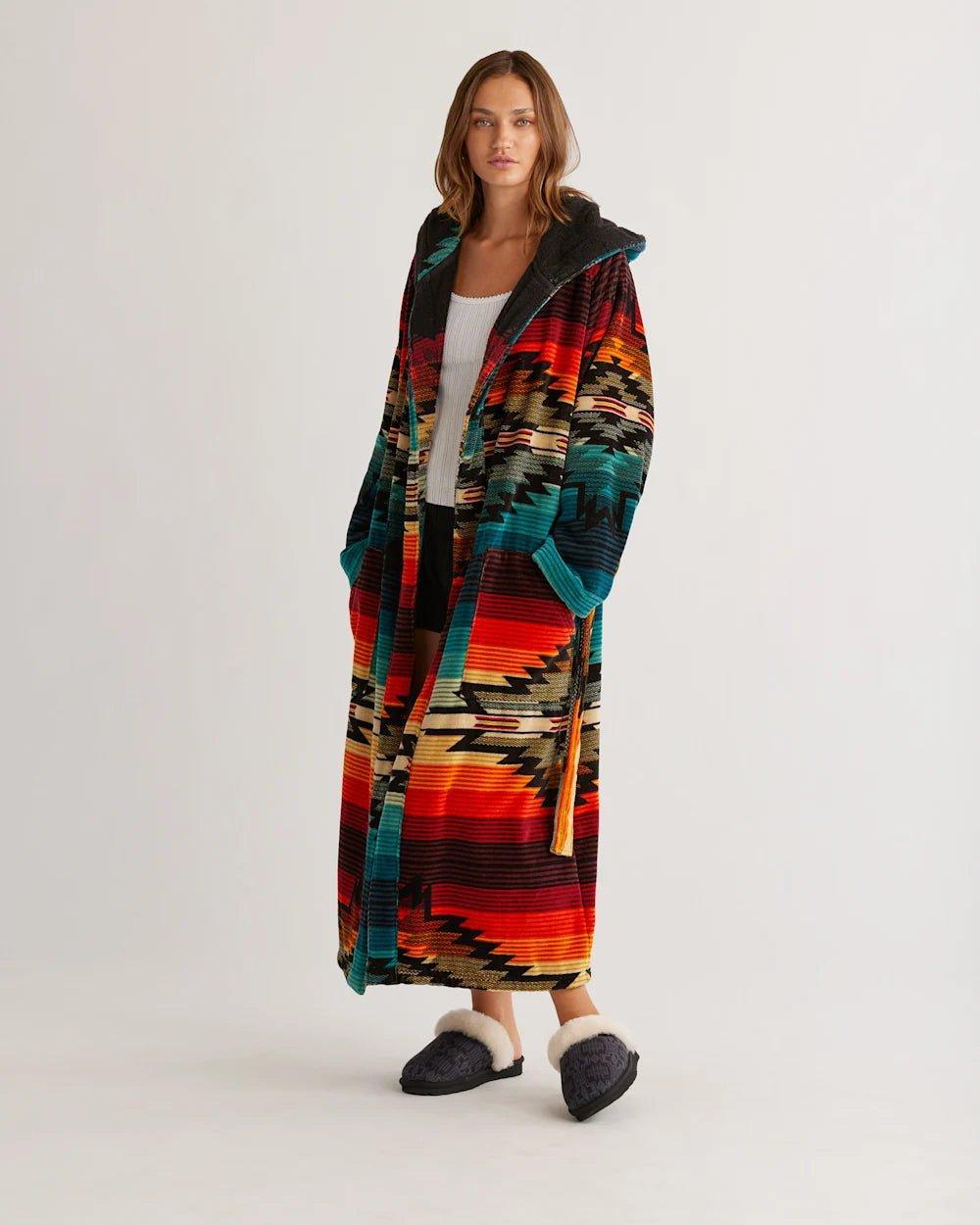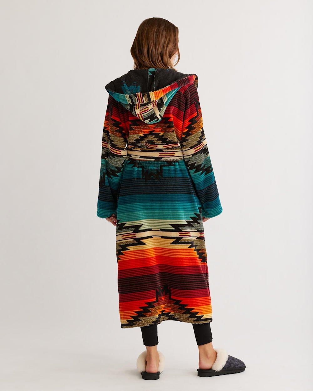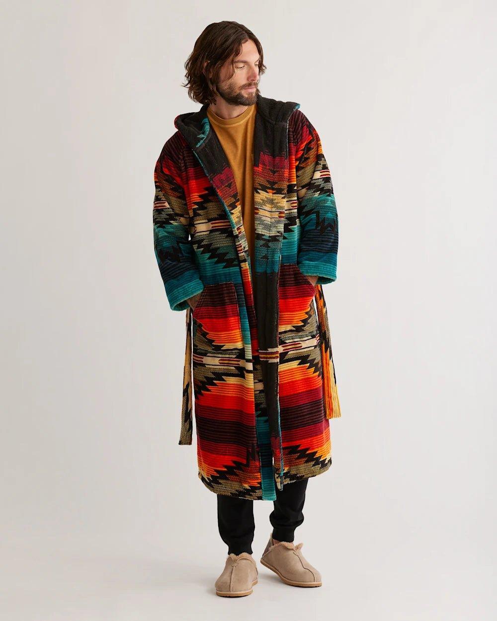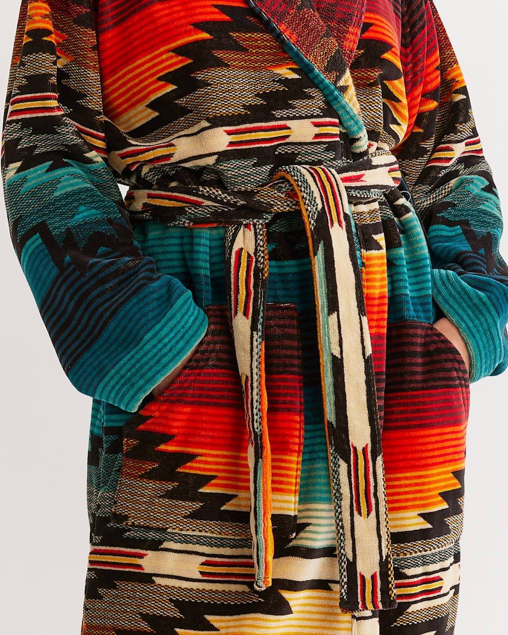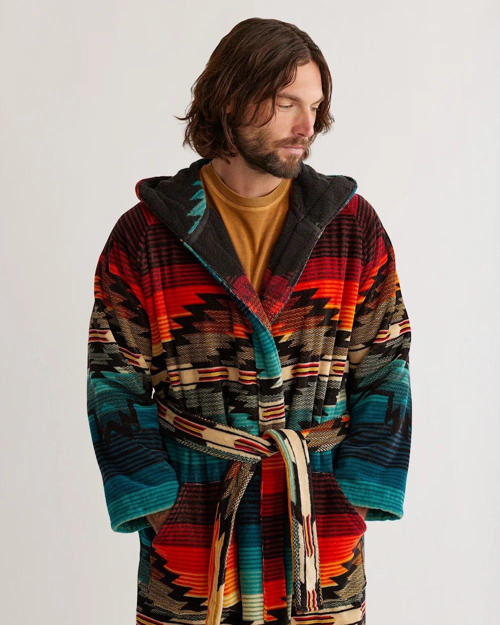 Indulge in the luxurious comfort of this pure cotton robe, featuring a soft velvety exterior and absorbent interior loops. With its generous hood, two deep pockets, and self-fabric waist tie, this robe offers a unisex fit and ultimate relaxation.