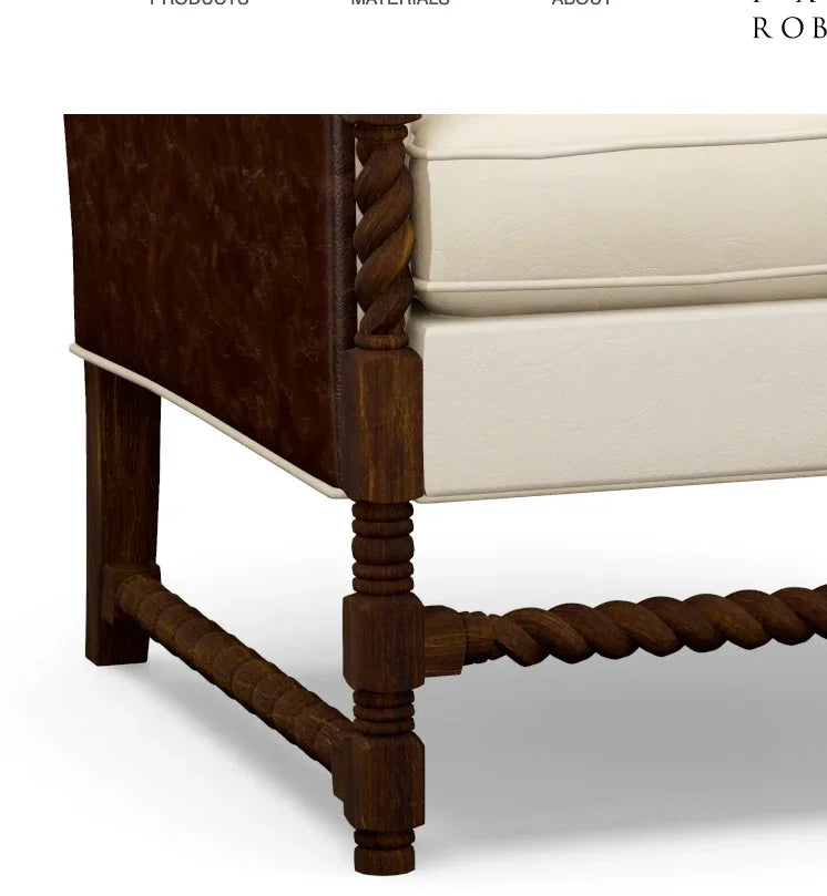 Ivory & Brown Leather Chair: