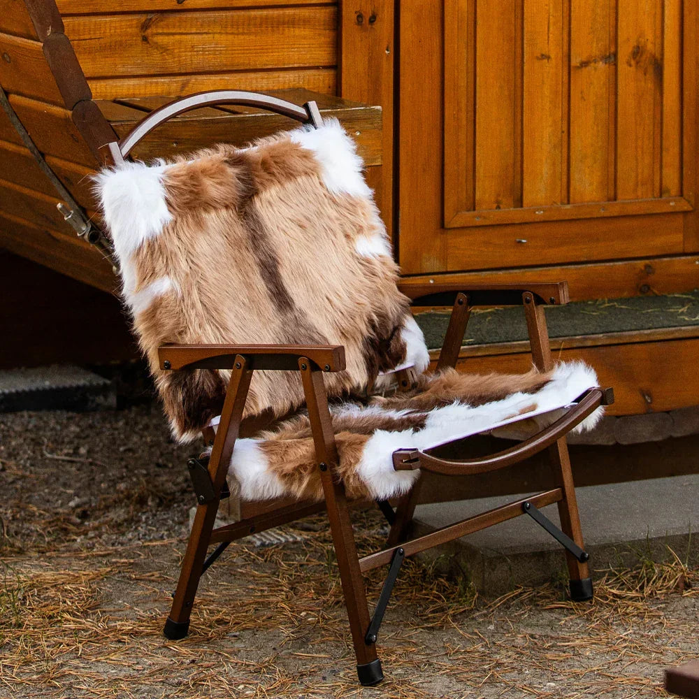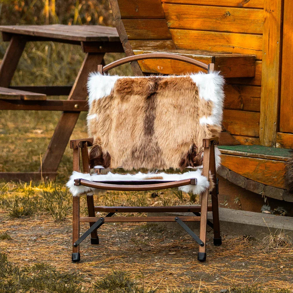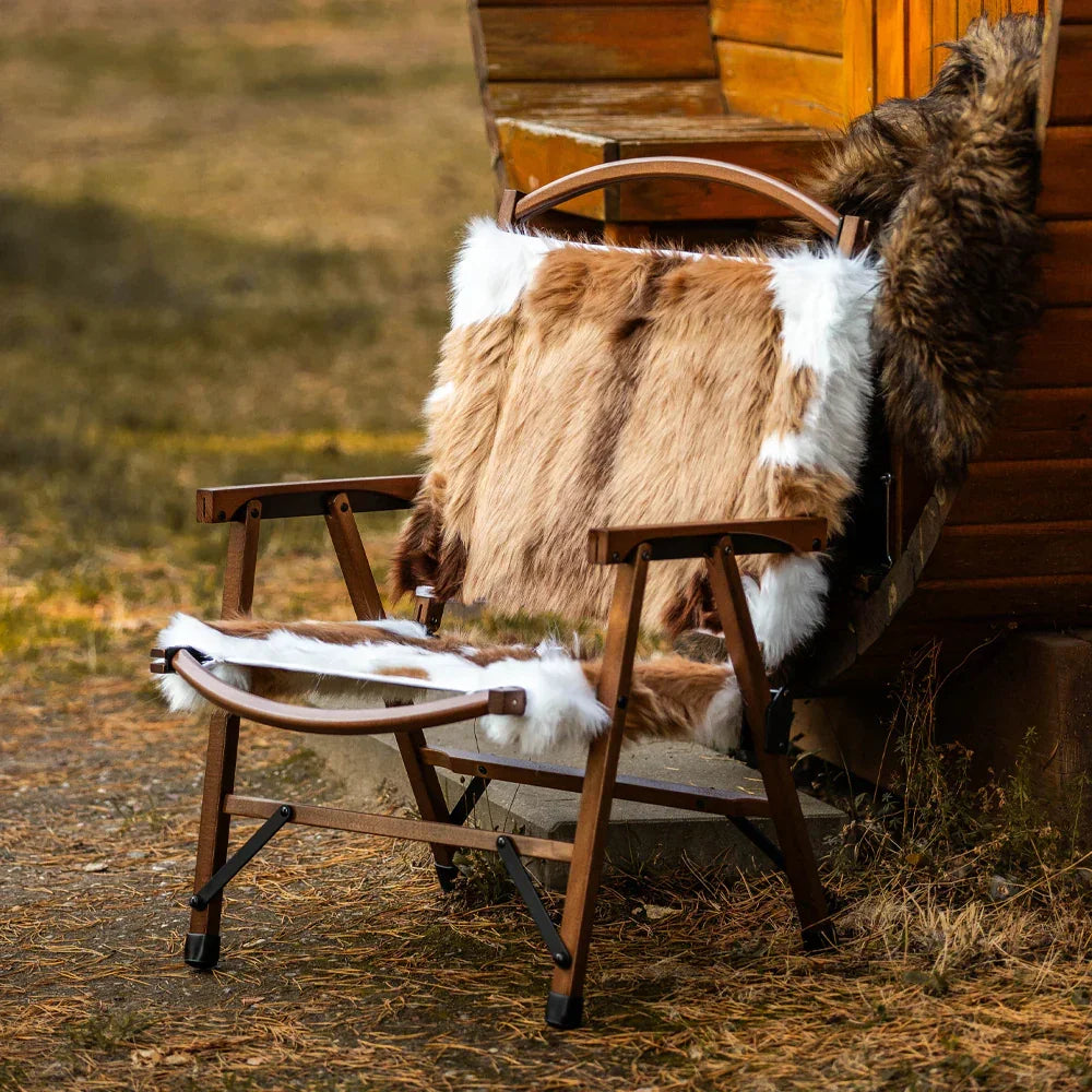 Discover ultimate comfort on-the-go with our Springbok Faux Fur Folding Chair. Designed for adventure-seekers, this chair is expertly crafted with lightweight Beech Wood for effortless handling and long-lasting durability. The thick faux reindeer fur top layer provides exceptional insulation, making it perfect for winter weather and outdoor outings. The sturdy 900D Oxford fabric base ensures reliable use, while the chair easily folds and packs into a compact carrying bag for convenient portability. Whether camping, having a picnic, or enjoying a winter night outside, this chair seamlessly combines warmth, style, and practicality. Take this fashionable, portable chair with you on all your journeys and make a lasting impression! Your friends will be sure to inquire about where you found this fabulous, rustic yet elegant folding chair.