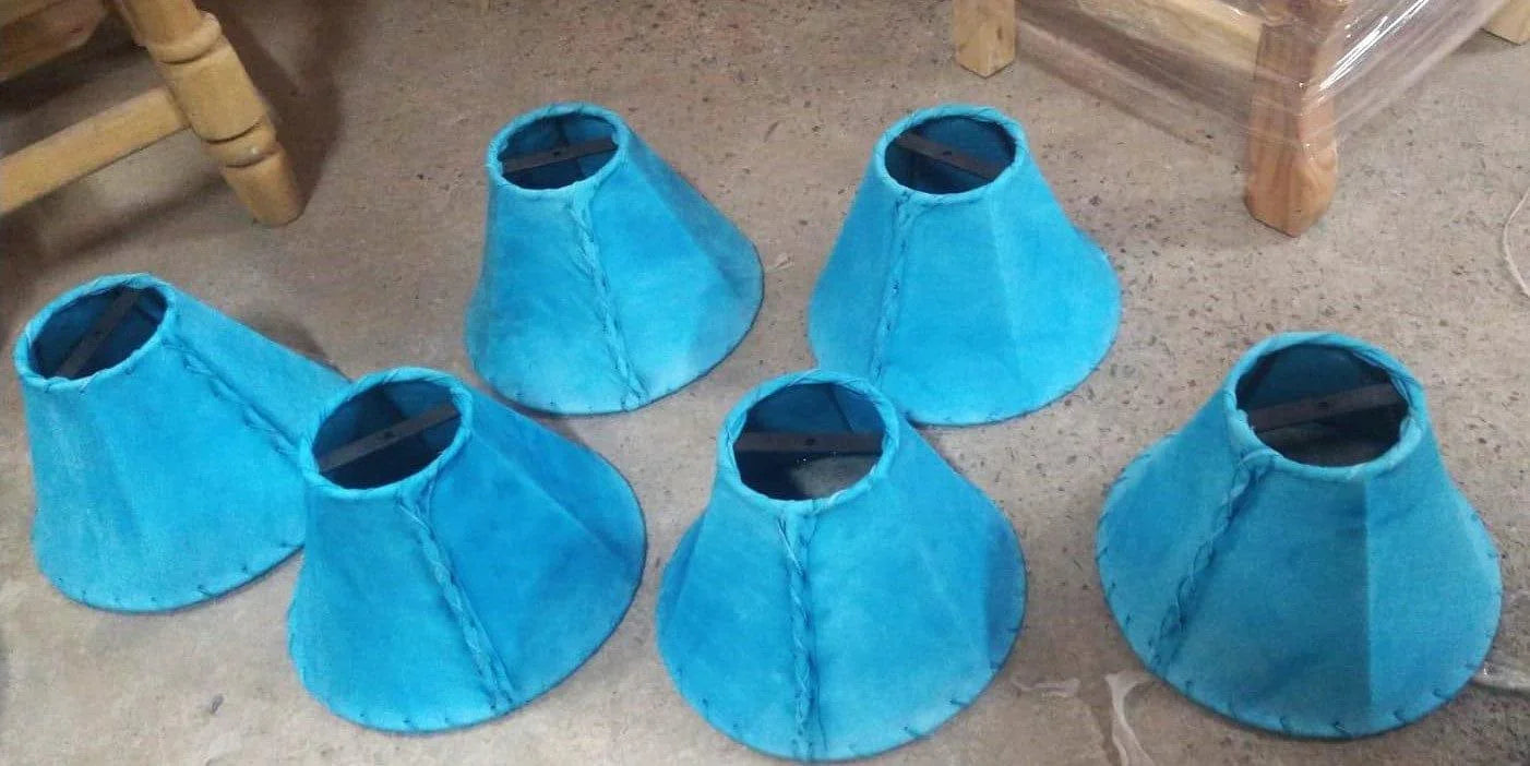 Make your lamps stand out with our Turquoise Genuine Rawhide Lamp Shades. Hand crafted from genuine rawhide leather, these shades are finished with leather whip stitching. They are available in a variety of colors as well, including natural, red, brown, and antiqued dyed rawhide. Complete your lamps with these enduring shades for the perfect final touch.