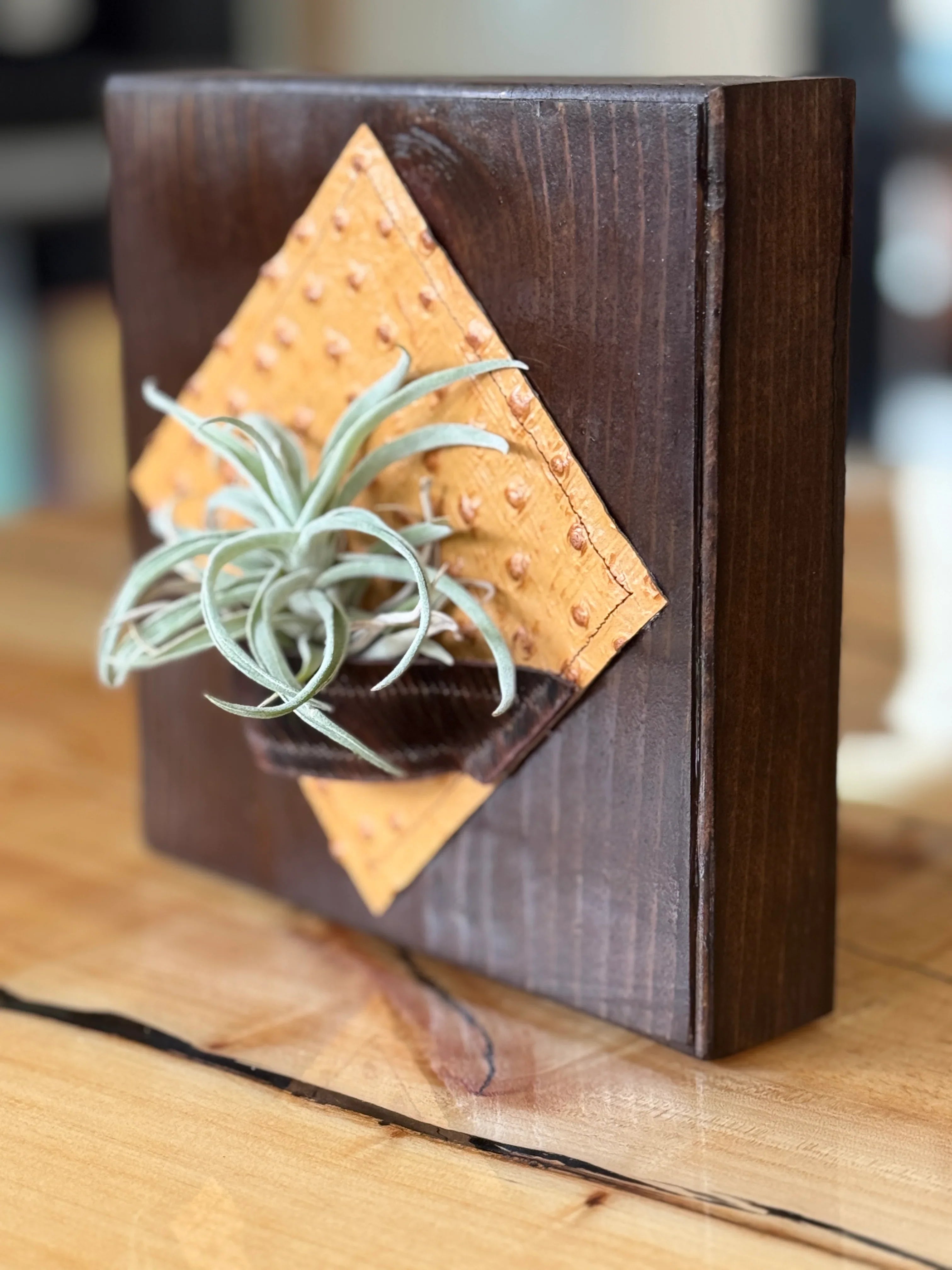 Air Plant Desk Plaque w/ Embossed Ostrich Leather