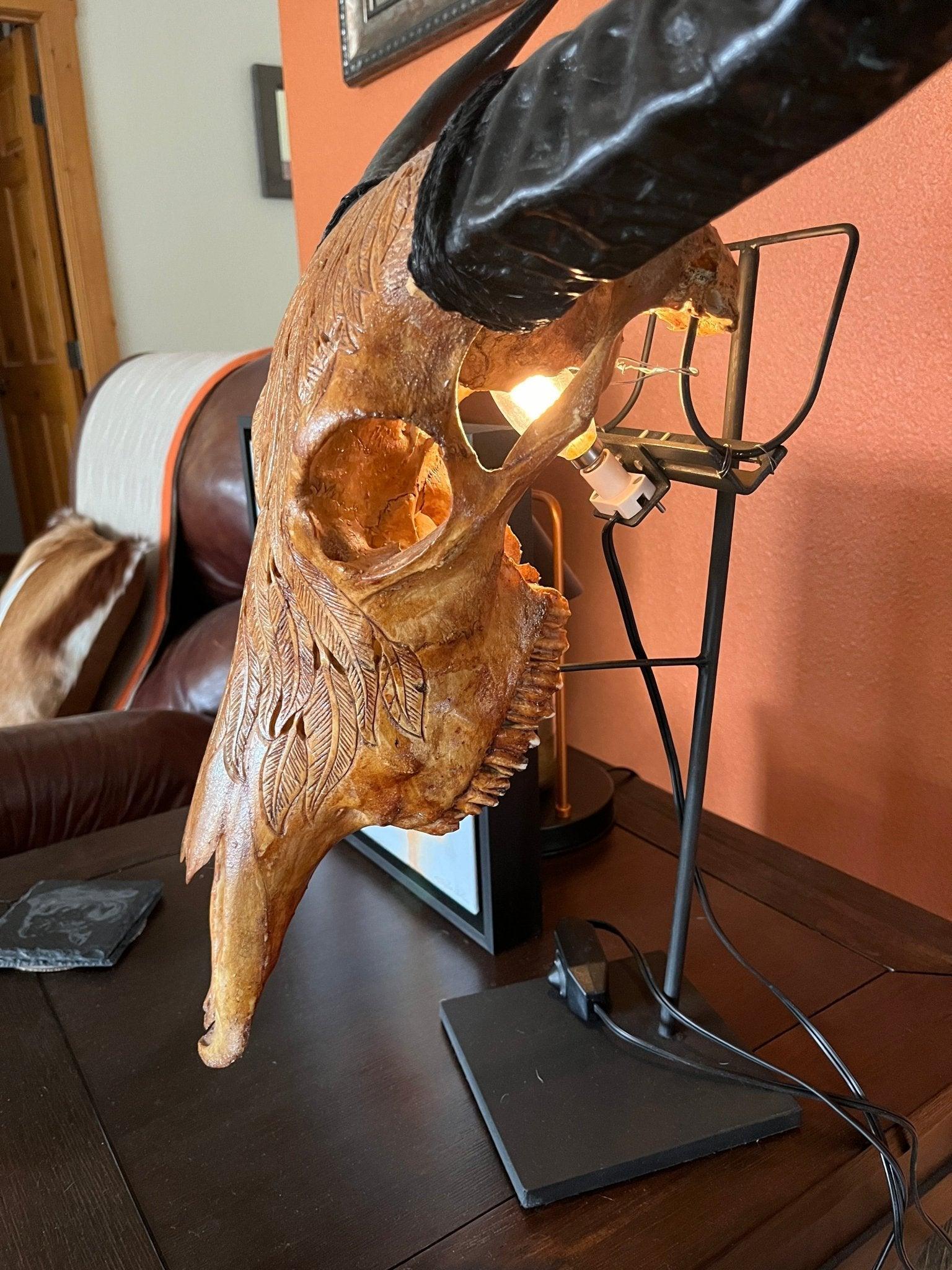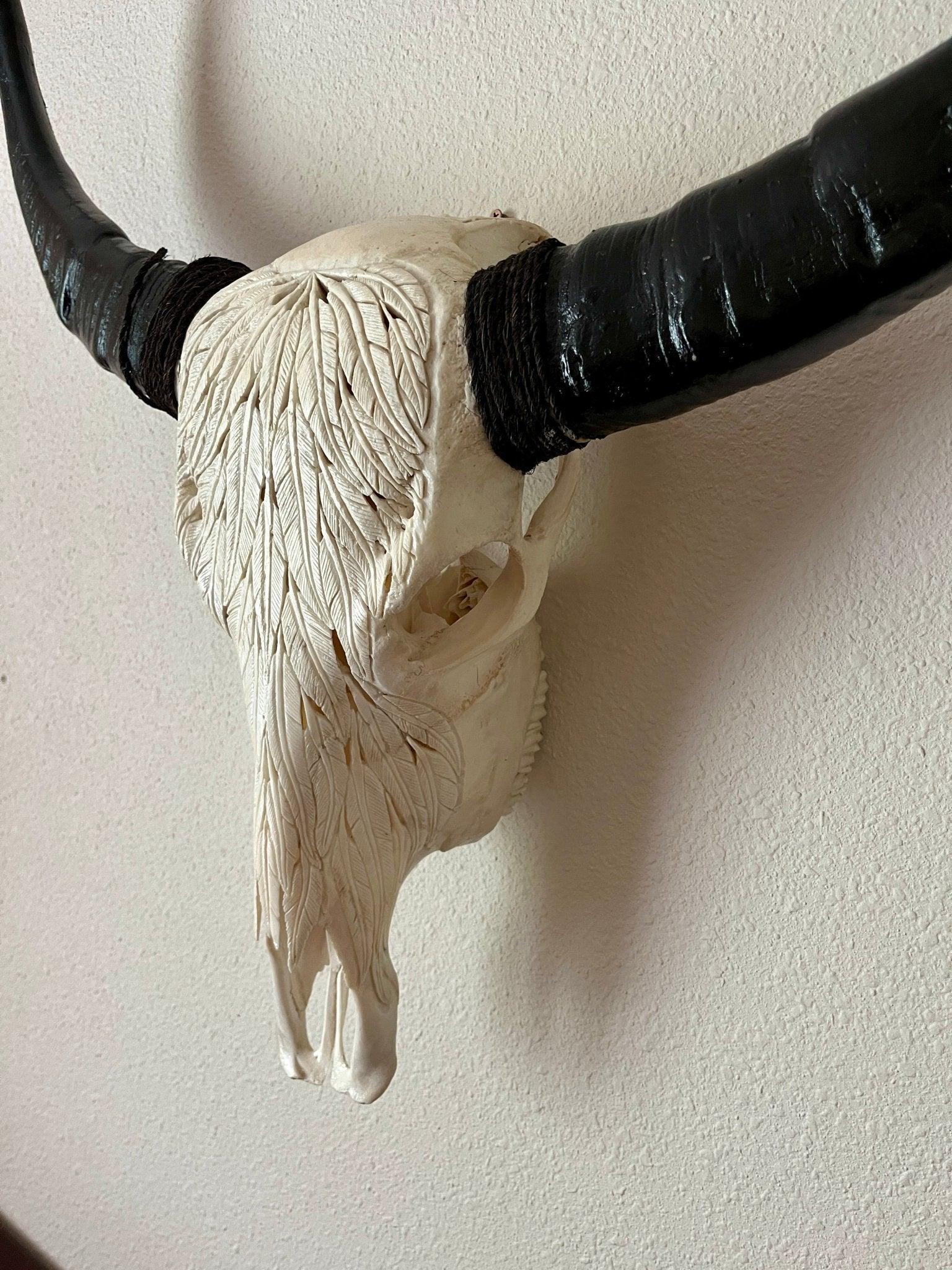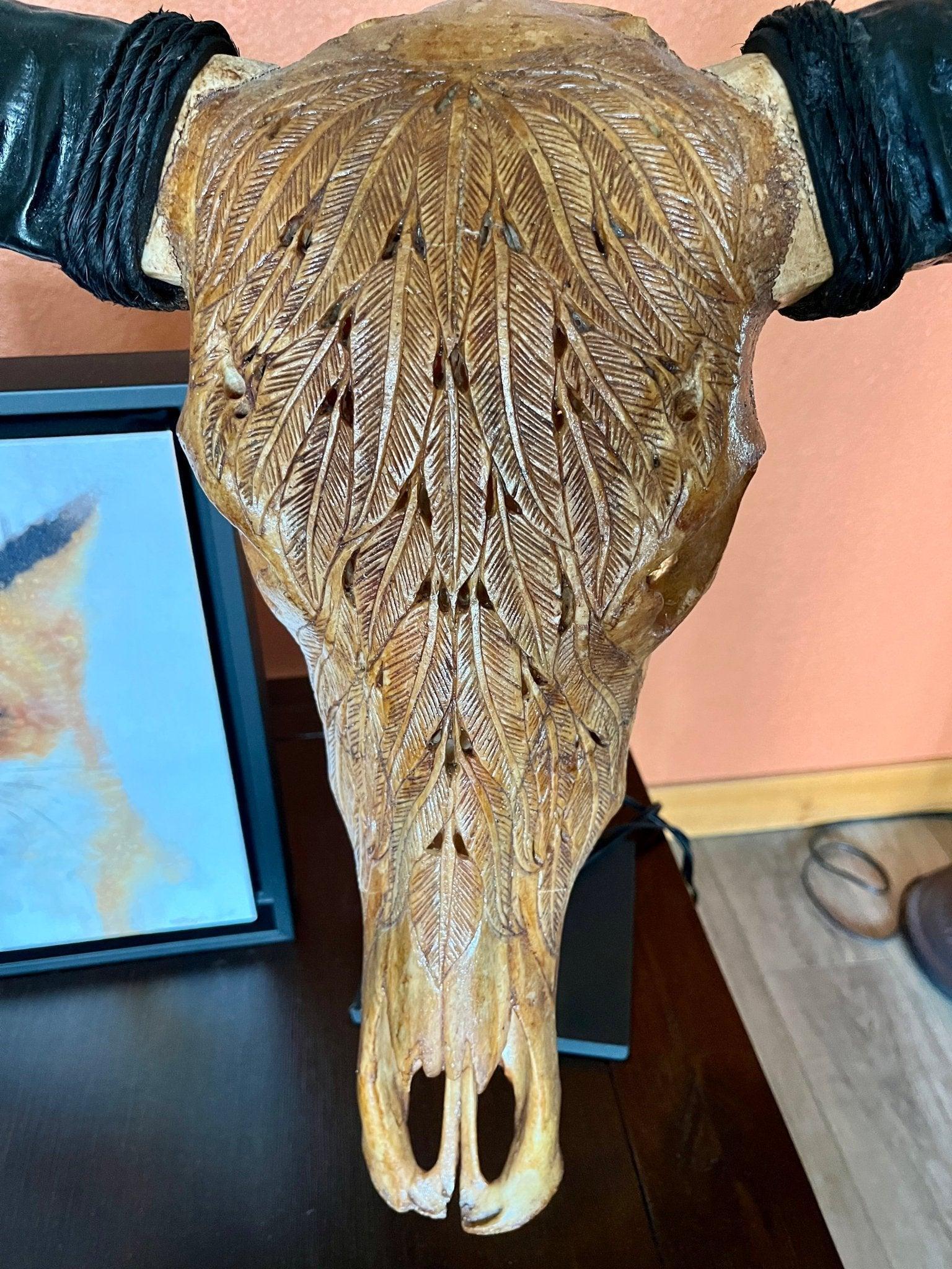 - Authentic hand-carved Buffalo skull. (Not Bison).