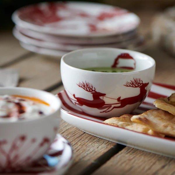 Holiday spirits are alive and bright on our playful Ho-Ho-Ho Reindeer Canape Plates featuring a bearded driver and his faithful reindeer pulling his sleigh.