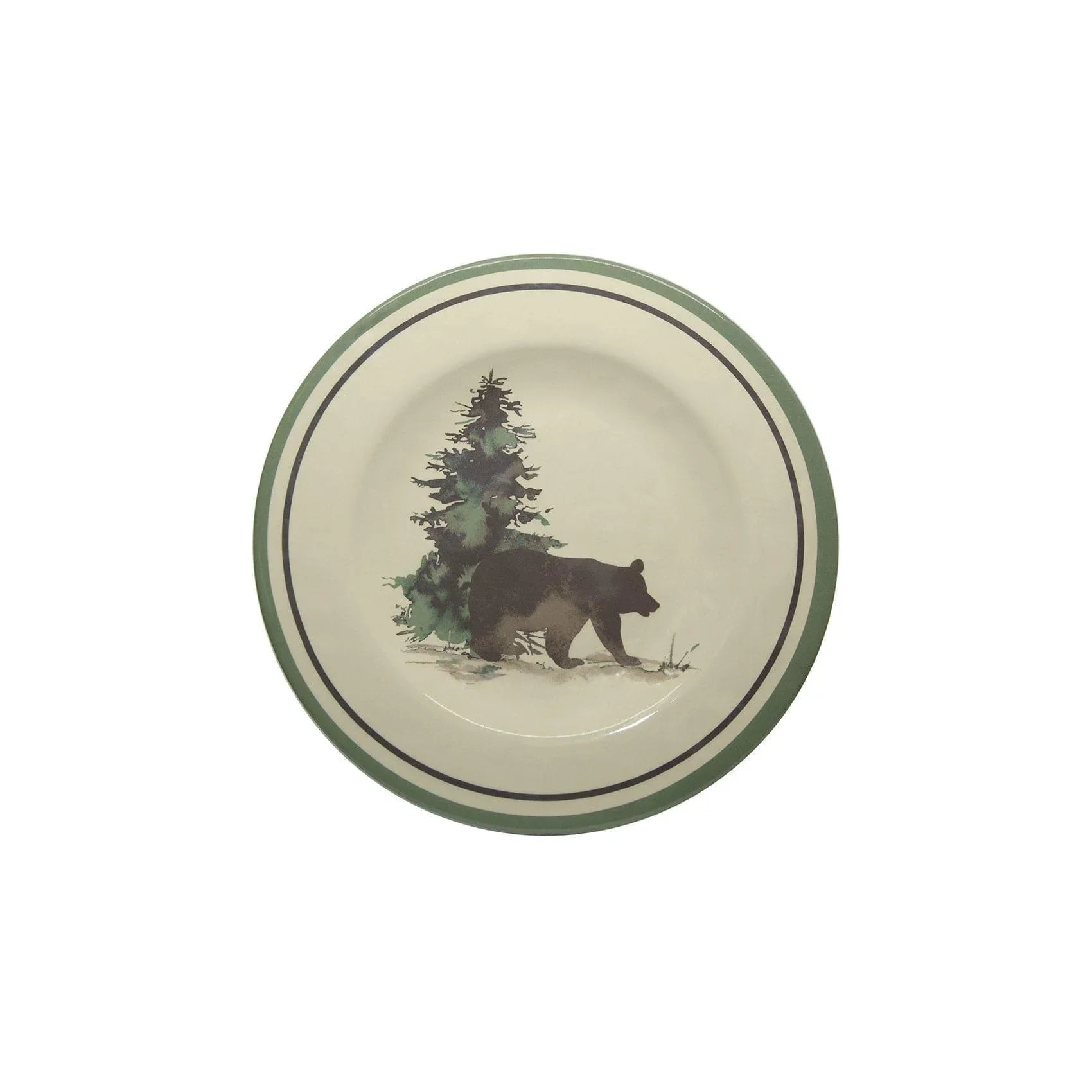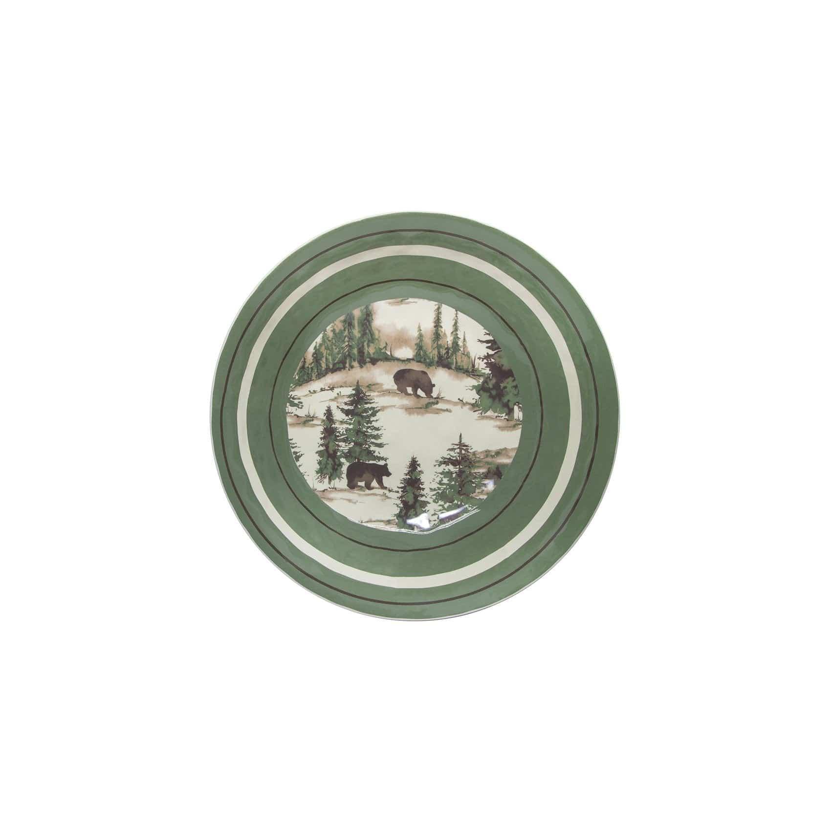 This Joshua Design Melamine 14 Piece Set offers an outdoorsy yet sophisticated appeal. With its nature motifs of flora and fauna alike, the handsome houndstooth accents complement the woodsman aesthetic. The green really pops against the warm undertones in this lodge dinnerware set. The Joshua melamine dinner set is a perfect complement for anyone's lodge or cabin. Imported. Items featured in our collections can be purchased separately.