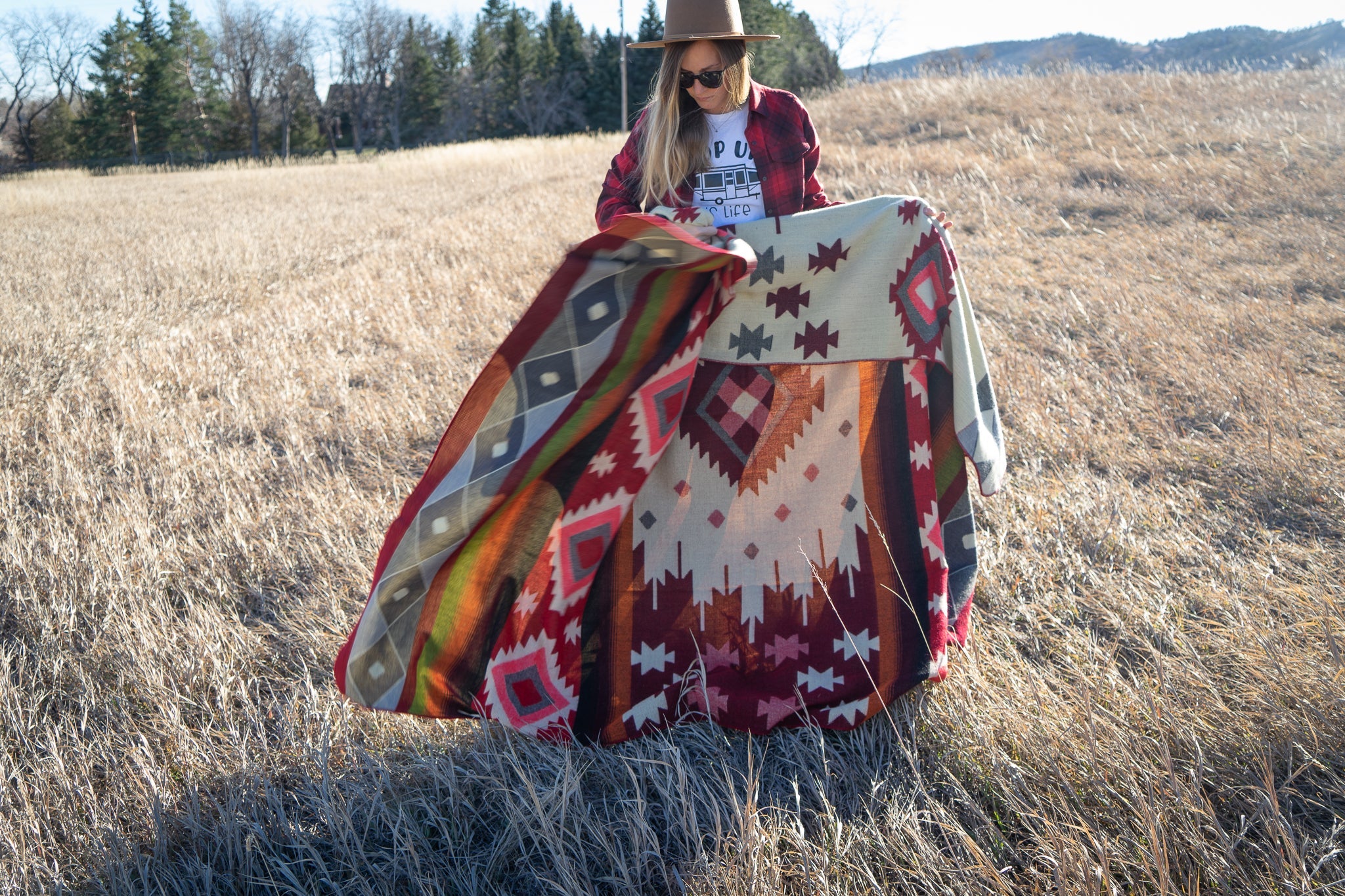 This can be used as a throw or is blanket sized to fit a Queen sized bed. Also it is the perfect camp, picnic, or all purpose blanket made for any adventure.