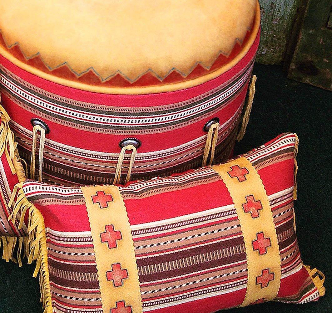 Our Cayuse Serape Accent Pillow is made with Straw deer suede and hand painted with symbolic Native American crosses. Native Americans of the Dakota plains territories were fond of using the cross to symbolize the 4 quarters of the universe , earth, sky, fire, and water.