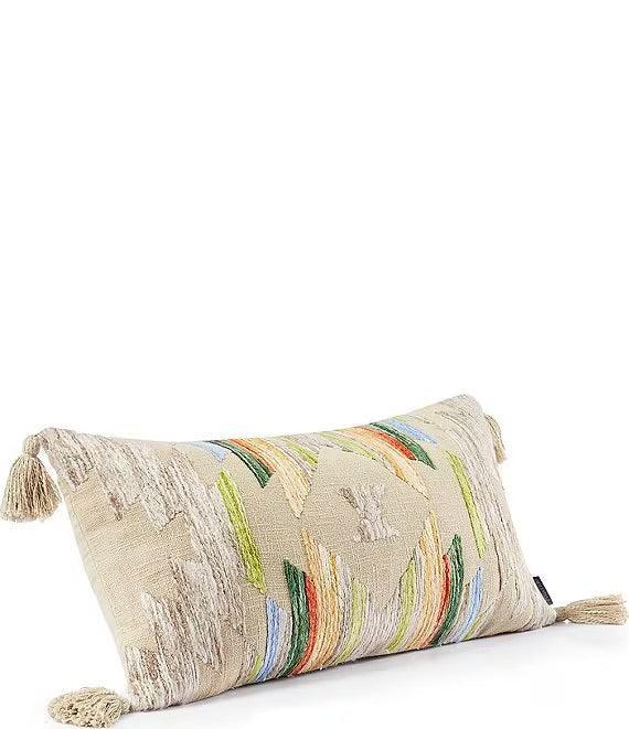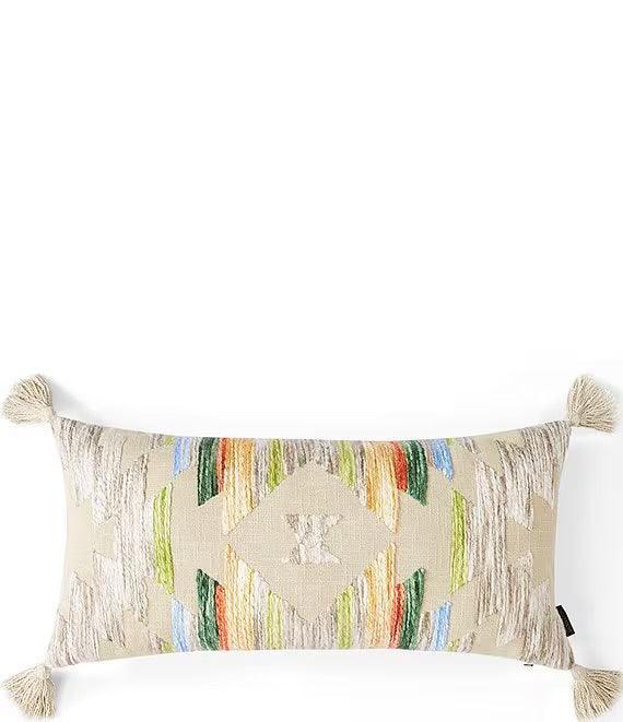 Add a touch of texture to your room with the Pendleton Summerland Oblong Pillow. Designed for hugging, this stylish accent is perfect for snuggling up while reading a book or watching TV. Its unique shape & tassel corners make it a must-have for any cozy space.