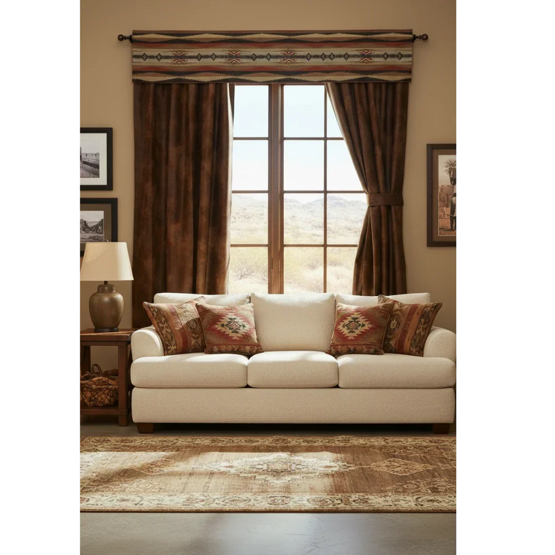 This set coordinates with many lodge, cabin, rustic and western decorated spaces. The valance in particular, is part of our Sunset Canyon Collection.