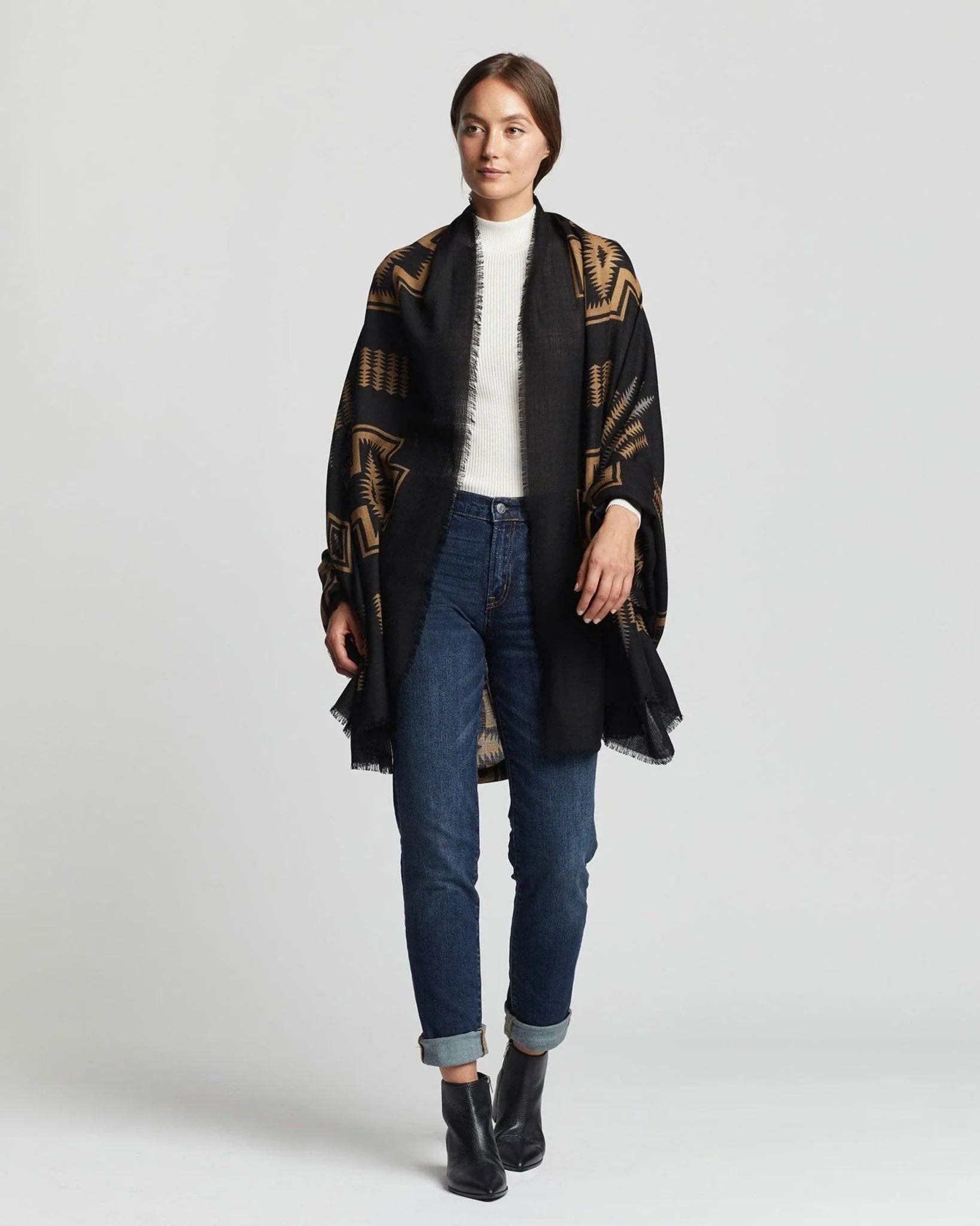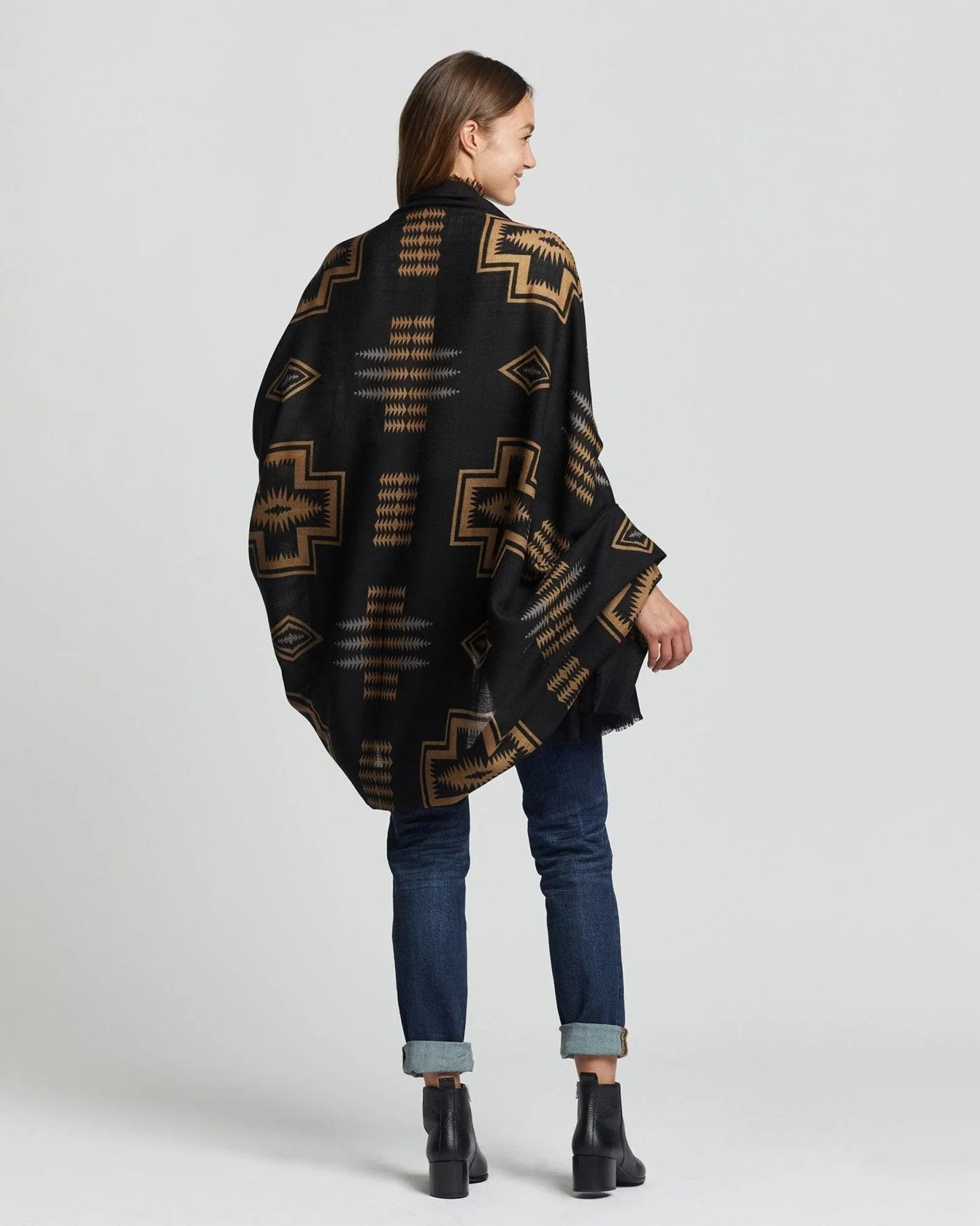 Indulge in the luxurious Harding Oversized Wool Scarf, featuring Pendleton's iconic 1923 jacquard design. Crafted from mercerized wool, this scarf is airy, lightweight, and irresistibly soft.